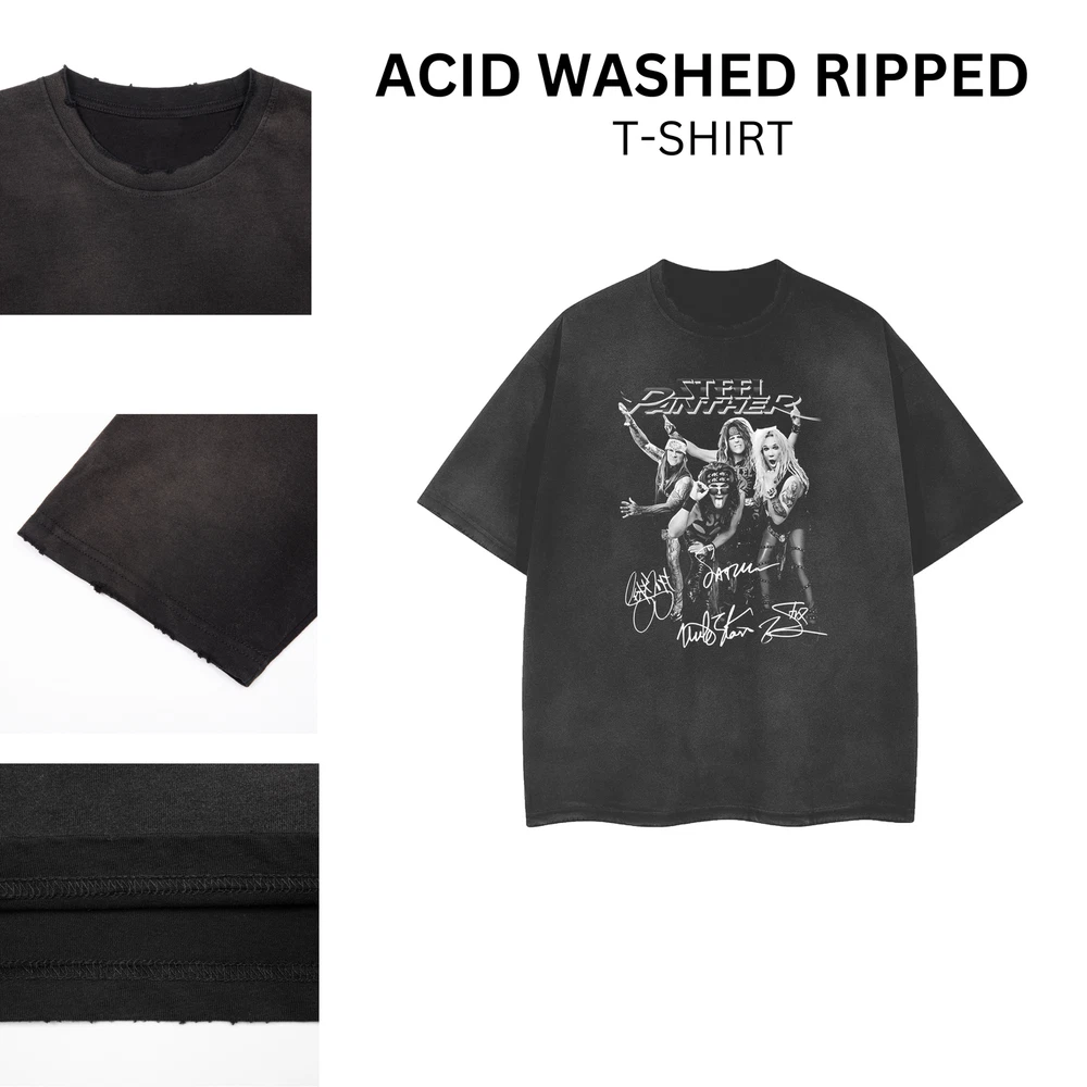 [ACID WASHED RIPPED] Steel Panther Distressed Vintage Feel T-Shirt Unisex 102637