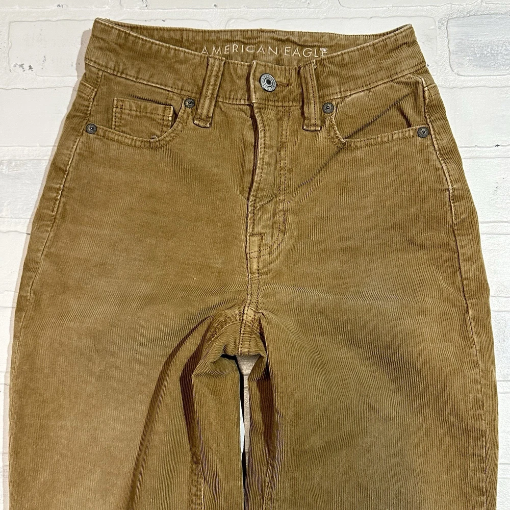 AE Stretch Corduroy Super High-Waisted Skinny Straight Pants Ladies Size 000 Seller does NOT accept returns. See photos for measurements & flaws. Sizes vary depending on manufacturer & era. Please review item description, flaws & sizing prior to purchasing.