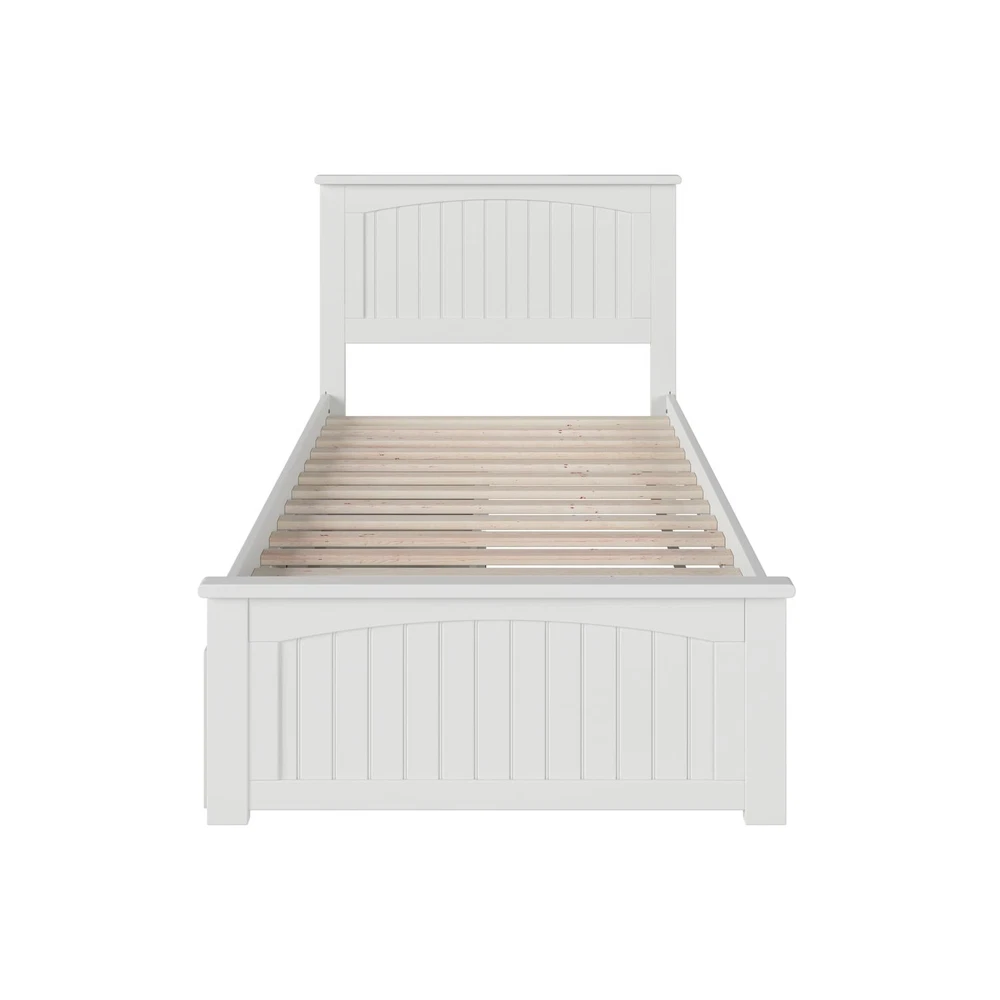 Whether you're dreaming of a seaside escape or a serene mountain retreat, the Nantucket Solid Wood Platform Bed with Matching Footboard and Set of 2 Storage Drawers is your ticket to transforming your bedroom style. With its captivating, grooved panel detailing in the headboard, this bed promises to be the centerpiece of any bedroom design. Choose from stunning finishes of Espresso, White, Walnut, Grey, or Light Toffee to best complement your existing décor. Available in various sizes, including Twin XL, Twin, Full, Queen, and King, the Nantucket caters to your space effortlessly. Crafted with a reliable slat kit, it's mattress-ready without the need for a foundation or box spring. Plus, it comes complete with a set of 2 underbed storage drawers to keep your space organized and Free Shipping Over $49.99* Details AFI Nantucket Platform Bed with Matching Footboard & Storage Drawers Product Description: Whether you're dreaming of a seaside escape or a serene mountain retreat, the Nantucket Solid Wood Platform Bed with Matching Footboard and Set of 2 Storage Drawers is your ticket to transforming your bedroom style. With its captivating, grooved panel detailing in the headboard, this bed promises to be the centerpiece of any bedroom design. Choose from stunning finishes of Espresso, White, Walnut, Grey, or Light Toffee to best complement your existing décor. Available in various sizes, including Twin XL, Twin, Full, Queen, and King, the Nantucket caters to your space effortlessly. Crafted with a reliable slat kit, it's mattress-ready without the need for a foundation or box spring. Plus, it comes complete with a set of 2 underbed storage drawers to keep your space organized and clutter-free. As a bonus, we've included a surface mount turbo charger, so all your electronics can stay charged and ready for action! Features: Cottage DesignSturdy, Solid Wood Construction features simple, grooved panel detailing that will complement any room Bed & Storage Drawers Feature Solid Hardwood and VeneersBed comes with 2 free-floating underbed drawers that can be placed on either side of the bed No Box Spring NeededDesigned for lasting durability, our slat kit supports your mattress to increase air flow for a more comfortable, cooler sleep Charging StationIncludes Surface Mount Turbo Charger, 6-foot cord, ETL listed, 18GA wire, 2 USB Ports .5V/3.5A Weight Capacity : Twin XL and Twin600lbs Full, Queen and King800 Lbs. Assembled Dimensions : Twin XLL:83.46 x W:42.76 x H:41.34 TwinL:77.95 x W:42.76 x H:41.34 FullL:77.95 x W:56.93 x H:44.29 QueenL:83.46 x W:63.70 x H:50 KingL:83.46 x W:79.92 x H:50