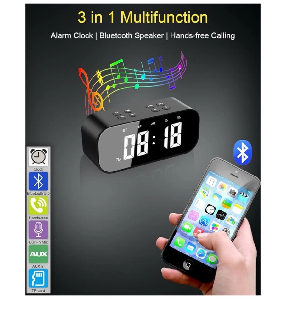 AFK Alarm Clock for Bedroom/Office,Digital Clock with Bluetooth Speaker,Small...
