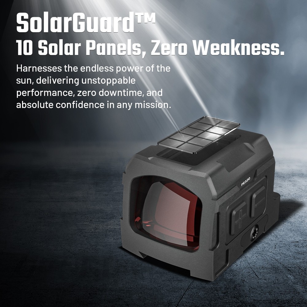 Enclosed Emitter Optic: The AIMWIN PE320 is a rugged enclosed red dot sight engineered for consistent performance in rain, dust, and harsh environments. This reflex sight features a crystal clear oversized window for faster target acquisition and a parallax free design that ensures pinpoint accuracy. The red dot optic emits a 650nm wavelength laser, delivering vivid visibility in any light condition. Built for tactical shooters, this durable optic offers unmatched clarity, stability, and speed 3 MOA Dot & 36 MOA Circle: Combining a precise 3 MOA center dot with a 36 MOA outer circle, this sight delivers faster target acquisition than standard micro optics. Switchable dot, circle, and circle-dot reticles adapt to both close-quarters speed and long-range precision. Built for reliability, the PE320 withstands 2000G shock without losing zero, while its sealed housing offers IPX7 waterproof and dustproof protection for consistent performance in rain, snow, dust, or harsh environments SolarGuard Dual Power Optics: This solar red dot optic features a dual power system combining a CR2032 battery with up to 50,000 hours of continuous runtime and an integrated SolarGuard panel that delivers sustainable power in daylight. The side load battery design allows quick and tool-free battery replacement without removing the sight from your firearm. Whether in training or duty, this long battery life red dot ensures you never run out of power when it matters most 11 Brightness Enclosed Red Dot: This solar red dot sight includes 11 adjustable brightness levels, 9 for daylight visibility and 2 for night vision compatibility, delivering clear aiming in any environment from low-light indoor shooting to direct sunlight. Equipped with Aim Awake motion-activated technology, the sight powers on instantly when movement is detected, ready instantly. Windage and elevation can be adjusted ±50 MOA each, giving a total 100 MOA travel range for precise zeroing. ACRO to RMR Adapter Red Dot Sight: This reflex red dot sight features an ACRO footprint and includes an ACRO to RMR adapter plate, allowing ACRO-style enclosed optics to be securely mounted on slides or plates with standard RMR cut patterns. It provides a simple upgrade path for pistols or rifles without changing the existing mounting system, ensuring wide compatibility across multiple platforms The AIMWIN PE320 Enclosed Sight is a rugged red dot optic with a 3 MOA dot and 36 MOA circle for fast and precise aiming. Its dual power system combines a SolarGuard panel and a CR2032 battery, delivering up to 50,000 hours of runtime with seamless automatic switching. The parallax-free wide window, Aim Awake motion activation, IPX7 waterproofing, and 2000G shock resistance make it ideal for demanding environments. Built for tactical use, this optic is always ready when you are. Features Multi-Reticle System:Switch between 3 MOA dot, 36 MOA circle, and circle-dot configurations to match different scenarios and personal shooting preferences. 11 Brightness Levels:Includes 9 daylight settings and 2 night vision modes for flawless clarity in any light condition. SolarGuard Power System:Combines a CR2032 coin battery with a solar panel for uninterrupted operation day or night. Aim Awake Motion Activation:Automatically powers on the optic when motion is detected for instant readiness. Parallax-Free & Large Viewing Window:The 24 × 20mm window offers a wide field of view with parallax-free precision. Built to Last:Constructed from hard-anodized 6061-T6 aluminum and tested for IPX7 waterproofing and 2000G impact resistance. Specifications Dot Size& Circle Size:3 MOA & 36 MOA Reticle Color:Red (650nm wavelength) Magnification:1× Parallax:Parallax-Free Brightness:11 Levels (9 Daylight + 2 Night Vision) Adjustment per Click:1 MOA Windage & Elevation Range:±50 MOA per axis (Total 100 MOA) Window Size:24.0mm × 20.0mm (0.94” × 0.79”) Material:6061-T6 Aluminum with Hard-Anodized Finish Footprint Compatibility:RMR to ACRO Adapter Plate Included Dimensions:45.3mm × 35.0mm × 31.2mm (1.78” × 1.38” × 1.2”) Weight:62g (2.19 oz) Waterproof Rating:IPX7 Shock Resistance:Rated to 2000G Operating Temperature:-30°C to 60°C (-22°F to 140°F) Accessories