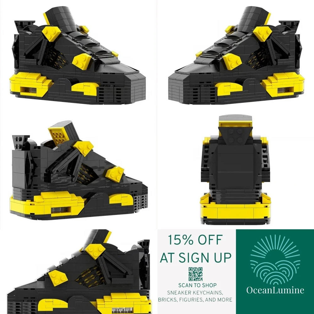 AJ4 Thunder Sneaker Building Bricks, Matching Key Chain, Puzzles Blocks Toy