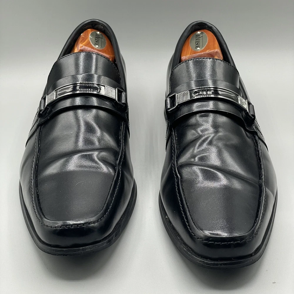 ALFANI Mens Dress Shoes Clicker Black Leather Loafer Slip-On Size 9 M. This is a Pre-Loved and Well Cleaned Pair of Used Shoes and No Major rips or Tears. Shoe box available . Your order will be carefully and safely packed and Shipped within 24 hours from a Smoke Free Home . These are raw images with no edits. You will receive the same shoes that you see in the images . I upload over 10 images from different angles for you to get a better idea about the product . If you have any questions please text me , We can chat :) Make sure to Follow my Store , I’m uploading great shoes everyday for reasonable prices .
