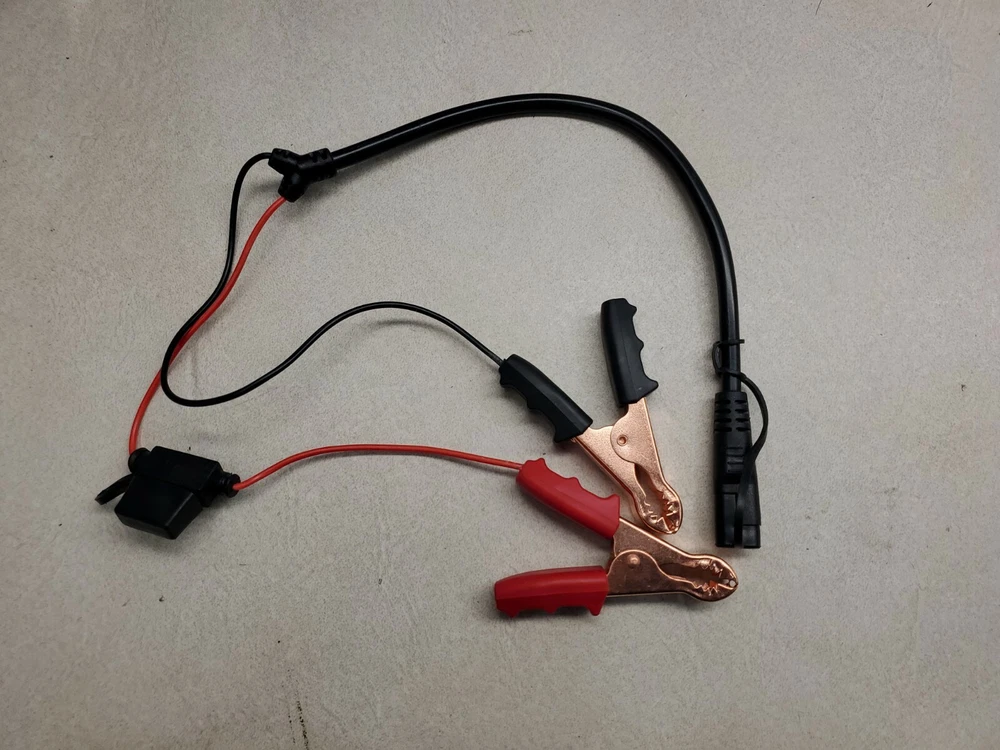Simply connect this harness to your ATV, UTV, Motorcycle, lawn mower, car, boat, or any 12V battery to connect your battery tender, or to power any number of accessories using the standard 2 pin flat connector. When considering a harness like this, please compare closely. My harness is made of high-quality materials. The stress areas are reinforced with over-molded plastic which helps the harness last longer. The wire is 18AWG with a 105C rated insulation to better handle the high temperatures near a running motor. The alligator clips use a strong spring, have serrated teeth to better hold the battery terminal, and have finger grip molded plastic to allow better handling with gloves. Includes a 5A fuse. The tip to tip length is 27"