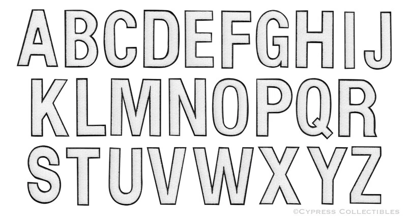 EMBROIDERED IRON-ON PATCHES LETTERS Red, Black or White! EACH LETTER is 2.5-inches TALL! IRON-ON OR SEW IRONED-ON PATCHES WILL NOT COME OFF! TOP QUALITY, DETAILED EMBROIDERY FITS SLEEVES, HATS, JACKETS, VESTS GREAT FOR SCRAPBOOKS AND PHOTO ALBUMS FREE SHIPPING!!!* NO MATTER HOW MANY PATCHES YOU ORDER We always combine shipping! * = Domestic rate only. $4.89 for International Shipping CLICK HERE FOR MORE PATCHES All original photographs, HTML design, and auction template Copyright ©2010 Cypress Collectibles. All rights reserved. We are not responsible for any taxes, duties, or tariffs imposed by the bidder's country.