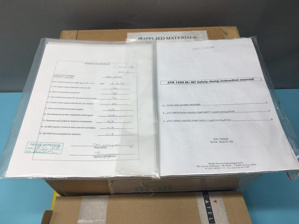 *Please contact us for same-day order processing* AMAT 0242-20827 KIT, SAFETY RETRO-FIT, ALCATE This product is securely enclosed in its packaging and sold as new. The outer packaging may have been opened for inspection purposes and to take photos of the contents. For more details, please refer to the attached pictures. AMAT kit includes: 1 AMAT 0250-16307 ALCATEL ATH160 MANUAL 1 AMAT 3620-00186 CLAMP FOR TURBO Price is for 1 item. We have provided pictures and a detailed description of each item, including its condition. If you have any questions or need more information, please contact us, and we will respond promptly. Please note that we are not selling any additional accessories with the item, such as cables, manuals, or software unless they are explicitly mentioned in the description and shown in the pictures. We cannot test the equipment, and it is being sold "As is and Where is" without any warranty, expressed or implied, regardless of its condition. We encourage you to inspect the products before making a purchase. All sales are final, and no returns or exchanges are permitted. Please review our policies before making a purchase. Buyer is responsible for all shipping and handling costs, including any applicable insurance, taxes, VAT, tariffs, or duties. The buyer is required to sign the shipping confirmation upon delivery of the item, as needed. For international orders, please note that you may need to complete an End User Statement form as a buyer. After we receive your payment, please allow us a period of 3 business days to process and ship your order. We welcome all buyers to inspect the equipment before making a purchase. For additional information, please email or contact us. Farmon Inc. 562 South Milpitas Blvd. Milpitas, CA 95035 Our operating hours are 9 am to 4 pm (PST/GMT-8), Monday through Friday. Appointments can be made for Saturday and Sunday. We would like to acquire any surplus or unnecessary inventory you may have. Feel free to get in touch with us to have your inventory assessed and taken off your hands. We offer a wide range of semiconductor components and equipment, including RF generators, chillers, turbo pumps, cryo pumps, MFCs, vacuum pumps and controllers, step motors, drivers, and more.