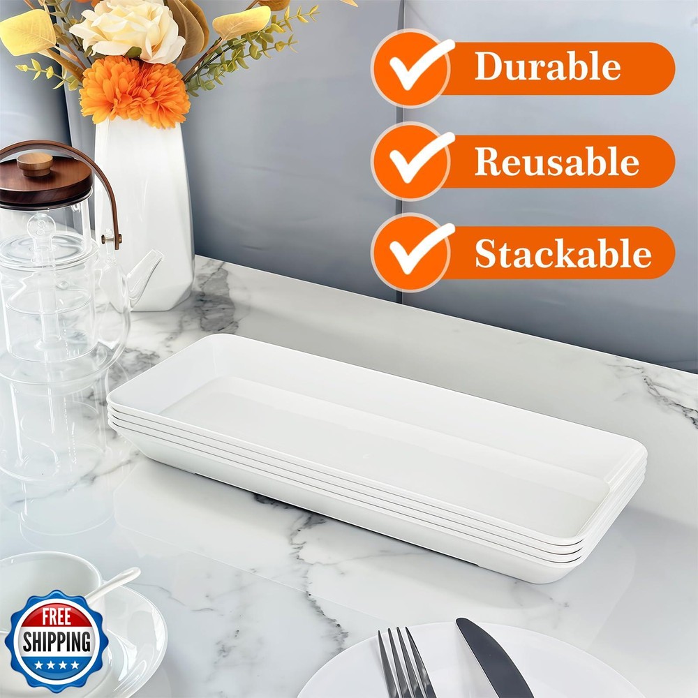 AMGBZT Serving Tray Platter Rectangle, 3 Pcs Long Narrow Food Tray for Veggie Fruit Snack Dessert, Plastic White Food Trays for Party Supplies Display, Rectangular Platters for Serving Food, BPA Free Features Serving Tray Platter Vlue: These serving platters are a practical addition to any dining setup. Measuring 16'' x 6'' x 1.38'', the white trays serve as ideal serving dishes and trays. Whether for snacks or main courses, this food tray offers functionality Durable And Reusable: Made of high - density, top - quality plastic, these serving pieces are reusable and BPA - free. The long tray suits large - scale serving, narrow dishes are for condiments, and there's a chip and dip set plus a fruit platter. Multi Function: Entertaining guests is a breeze with these plastic serving platters and bowls. The rectangular lunch tray is practical for daily use, and the charcuterie tray is perfect for snacks. Food display risers add charm to party food setups. Party Supplies Essentials: Elevate your party setup! A large serving tray handles main dishes. Snack & dessert trays offer variety. Use the cookie display stand, place a fruit platter on a food stand, or opt for a tiered serving tray to impress guests Easy To Clean: These white serving platters, eating trays, and plastic food trays are ideal party supplies. They're easy to clean, ensuring hygiene. Candy and cookie dishes in this set are not only practical but also add charm to your party spread. Shipping Free & Fast Shipping: We offer free shipping to most of the USA with a normal delivery time of 3-7 days. However, due to the current situation, additional delivery time (up to 3 weeks) may be required for some items. Alternative Carriers: We may use alternative carriers (e.g., USPS, FedEx, UPS) to ensure your package arrives safely and on time. Due to the use of multiple carriers, we are unable to provide a tracking number automatically. Handling Time: Orders are processed and shipped within 1-2 business days of receiving cleared payment. Shipping Restrictions: Shipping to Alaska, Hawaii, Puerto Rico, Guam, and other US territories may incur shipping charges or delivery restrictions. Please contact us before ordering, or your order can be refunded/cancelled. State Restrictions: Certain items may not be shipped to California due to state regulations. Contact for Tracking Updates: If you require tracking updates or have any concerns about the delivery of your order, please feel free to contact us, and we will be happy to assist you. Return Policy 30-Day Hassle-Free Returns: If you are not completely satisfied with your purchase, you can return the item for free within 30 days of receiving it for a full refund or exchange. Easy Return Process: Contact us, and we will provide you with a prepaid return shipping label and detailed instructions. No Restocking Fee: There are no restocking fees for returns. However, the buyer is responsible for return shipping costs if the return is not due to a seller"s error. Refund Processing: Refunds will be processed within 1 business day of receiving the returned item in its original condition. Feedback Your feedback is extremely important to us. We strive to provide the best products and customer service possible. If you are satisfied with your purchase, please take a moment to leave us a positive review. If you have any concerns or issues with your order, please contact us before leaving negative feedback. We are committed to resolving any problems and ensuring your satisfaction. Contact Us If you have any questions or concerns, please feel free to reach out to our customer support team. You can contact us through the eBay messaging system. We are available Monday to Friday, 9:00 am to 5:00 pm EST, and we will do our best to respond to your inquiry within 24 hours. Thank you for supporting our small family business!