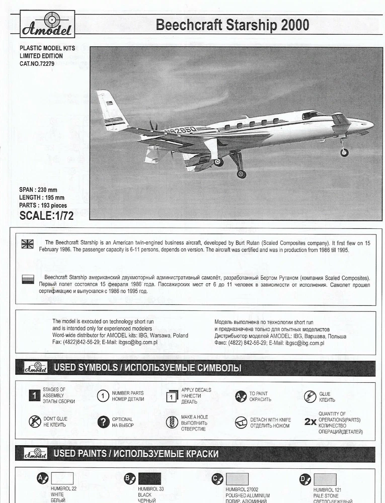 Plastic model kit High-quality details. Scale: 1:72 High-quality details. Manufacturer: AMODEL (Ukraine) Country/Region of Manufacture: Ukraine Composition: Plastic Model Kit Material: Plastic Paint: Unpainted, Unassembled, Kit do not contain paints and glue. Condition: New in Box Features: Kit Airplane scale model Model length, mm: 195 The kit includes: 193 plastic parts decal (sticker) 1 frames are made of transparent plastic (canopy) scheme for coloring the model detailed instructions in English and Russian Glue, paint not included Quality set, simple assembly. Suitable for experienced modelers, as well as for beginners. Due to the use of modern production technologies, all the details of the model fit perfectly, thanks to this, you can get an excellent result with minimal effort. ----------- This is a plastic model kit. Assembly and painting is required. Paint and glue is NOT included. Item Type: Scale model kit Commodity Attribute: Assembly The model is a plastic assembly model and needs to be assembled and painted by yourself You need an extra purchase of the glue, paint and so on!
