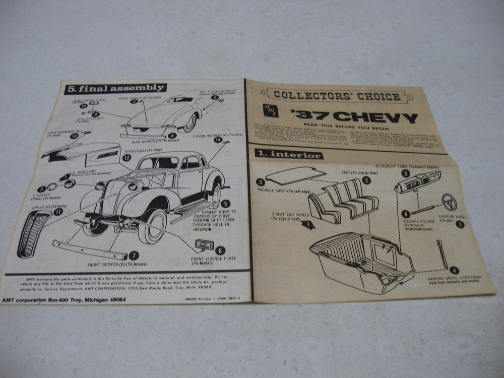 First, I want to thank you for taking the time to view my listing!! In this listing you are bidding on - Instruction Sheet Only - AMT 1937 Chevy Coupe Model Kit #2835-170. See pics.! I am not an expert on anything I sell. I purchase estates and buy abandoned storage units. The items I list for sale are just items I have found in one of these ways. The items are listed as found! I do not clean or repair the items! If you have any questions about an item then please ask! I will only contact you through eBay Messages, so DO NOT send any personal contact information! For those who send this information anyway, you will be reported to eBay. I will only ship to the continental U.S., Alaska & Hawaii. You will receive tracking numbers through eBay showing that your item was shipped!
