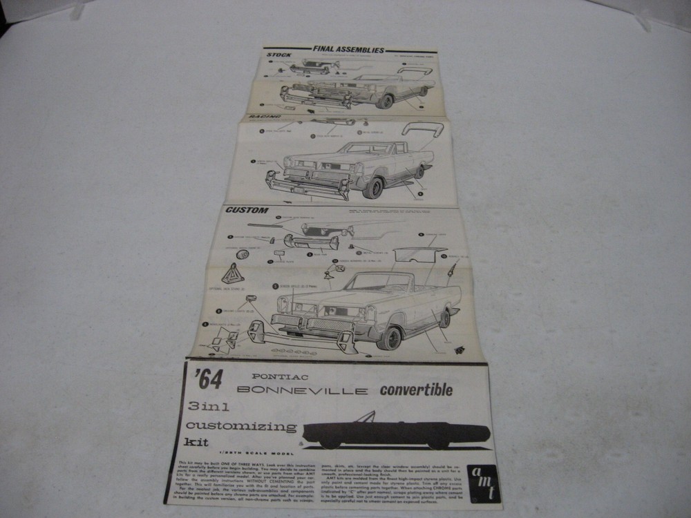 First, I want to thank you for taking the time to view my listing!! In this listing you are bidding on - Instruction Sheet Only - AMT 1964 Pontiac Bonneville Convertible Model Kit #6614-150. This has a couple tears. See pics.! I am not an expert on anything I sell. I purchase estates and buy abandoned storage units. The items I list for sale are just items I have found in one of these ways. The items are listed as found! I do not clean or repair the items! If you have any questions about an item then please ask! I will only contact you through eBay Messages, so DO NOT send any personal contact information! For those who send this information anyway, you will be reported to eBay. I will only ship to the continental U.S., Alaska & Hawaii. You will receive tracking numbers through eBay showing that your item was shipped!