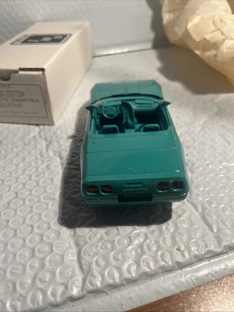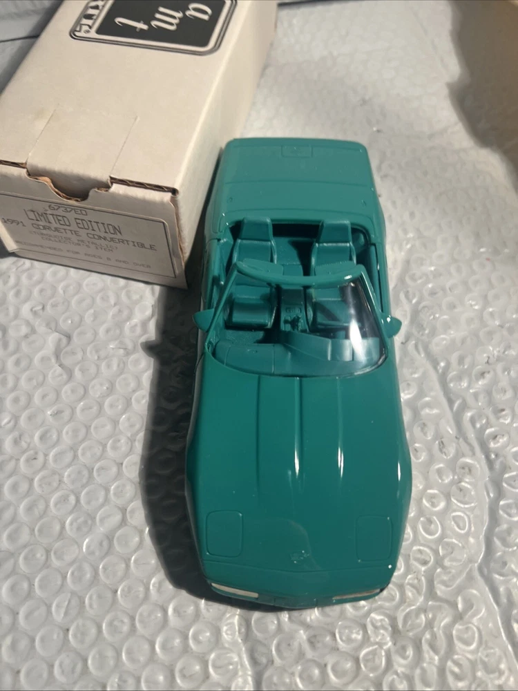 We Strive for nothing less than 5 Star FeedBack and 100% satisfied buyers! If for any reason you are not completely satisfied with your purchase before leaving feedback Please contact us with any questions or concerns. AMT/ERTL 1991 CORVETTE CONVERTIBLE LIMITED EDITION TURQUOISE PROMO NEW IN BOX Condition: BRAND NEW condition see photos original . If there is anything wrong with the item or not as described, please contact me as soon as possible. Item is for sale as it came to us. All items pictured are included in auction. No other accessories are included in auction. please read our descriptions and check our pictures for the best item explanation before purchase. Please read the item description and look at the photos carefully before bidding We will describe the item to the best of our ability. PLEASE ASK QUESTIONS PRIOR TO BIDDING. WE WILL BE MORE THAN HAPPY TO ANSWER QUESTIONS THE BEST WE CAN Buyer assumes responsibility for all shipping and processing charges. THIS AUCTION IS FOR 1 (one) item unless otherwise specified. Bchanes27 reserves the right to end any auction at anytime! All of our items will typically ship within 1 Business day After payment is confirmed. WE ONLY ACCEPT PAYMENT THROUGH PAYPAL AND ONLY SHIP TO U.S. ADDRESSES Except Hawaii, Alaska and Puerto Rico. Be sure to check out our other items and save us as a favorite seller! Keep an eye on our auctions, you never know what we might have! We appreciate you looking at our items, Good luck and Happy Bidding