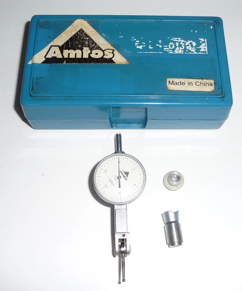 Amtos Lever-Type Dial Indicator measuring instrument with a Jeweled movement, designed for precise measurements in metalworking applications. It has a resolution of 0.0005 inches, making it suitable for accurate measurements in CNC, metalworking, and manufacturing processes. The Dial Test Indicator is a type of dial indicator used for checking the alignment and flatness of surfaces, as well as measuring small variations in distance or height. It is a valuable tool for ensuring precision and quality in industrial settings. Shipped USPS Ground Advantage