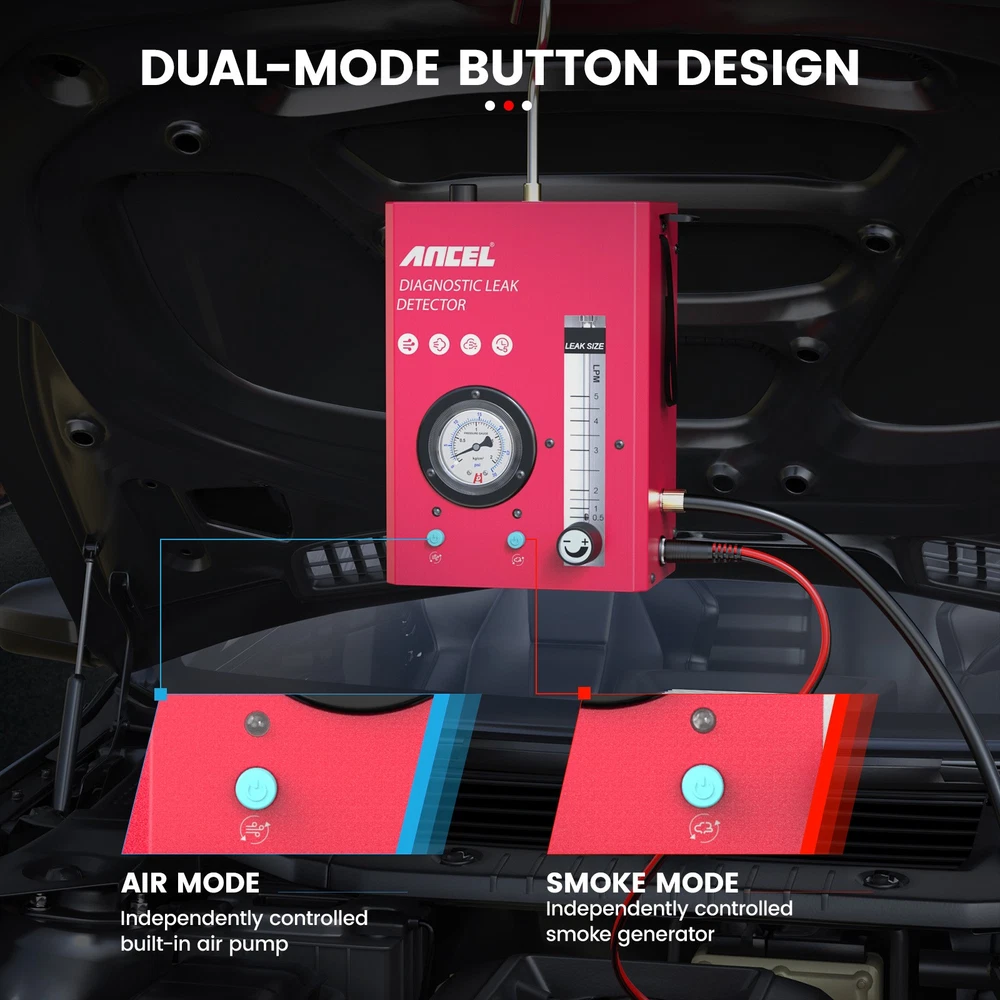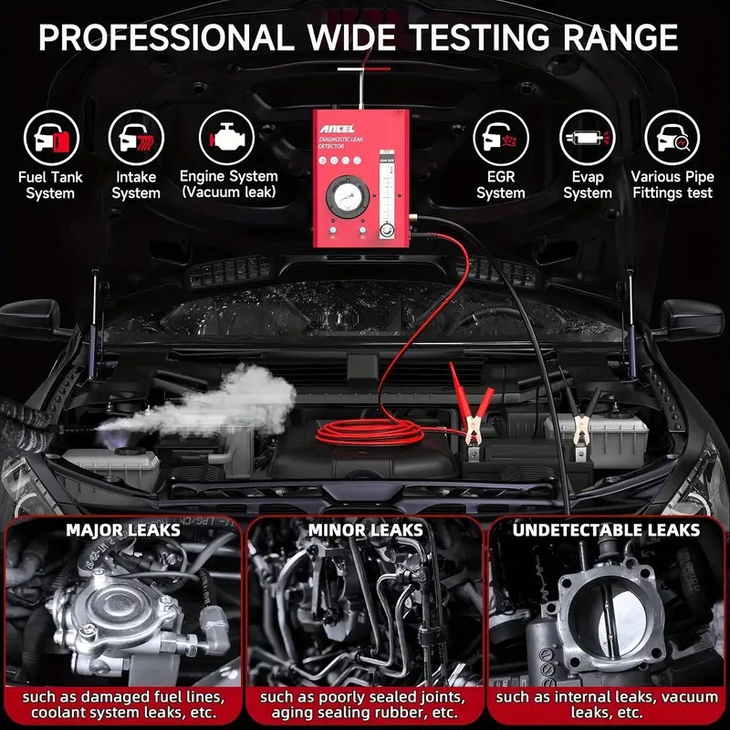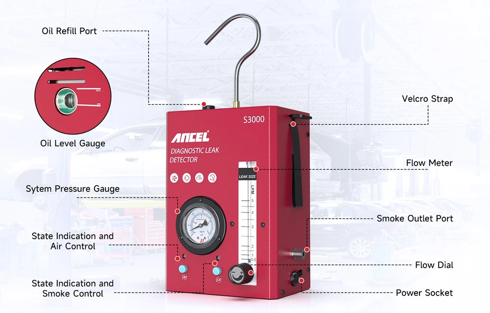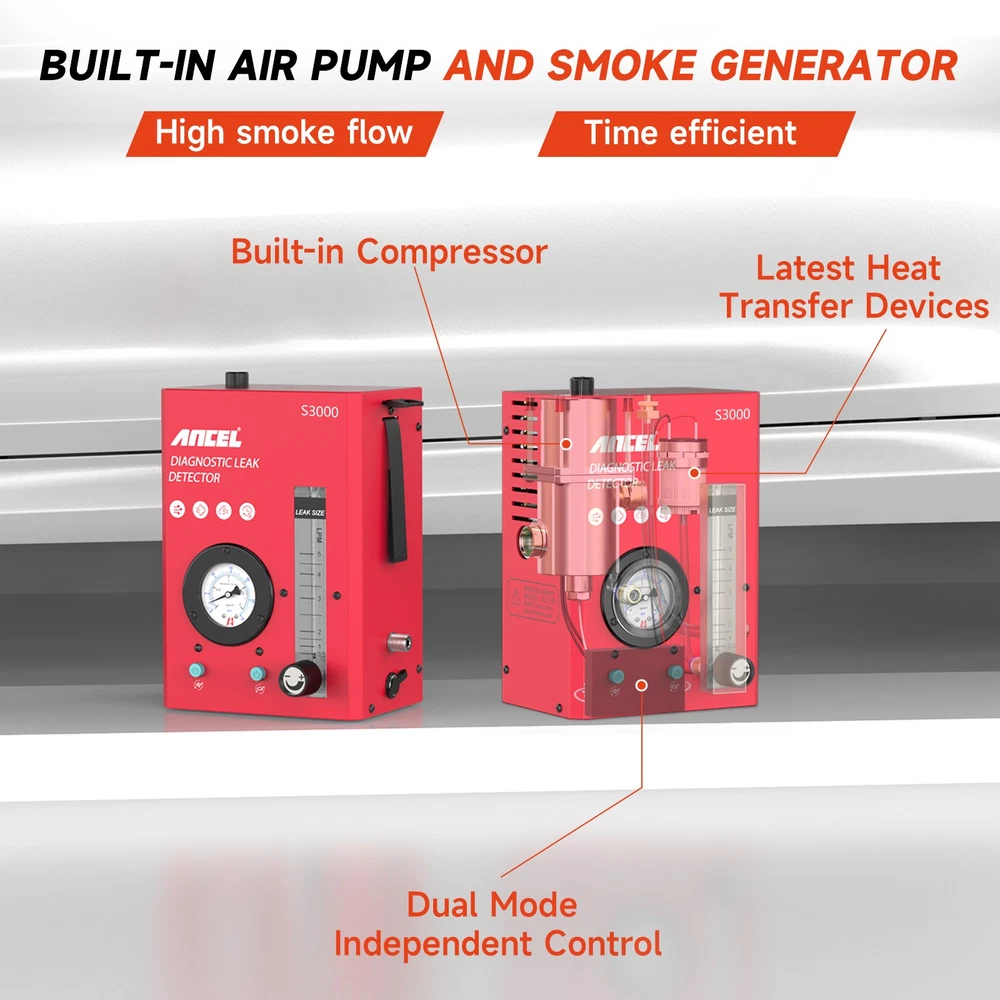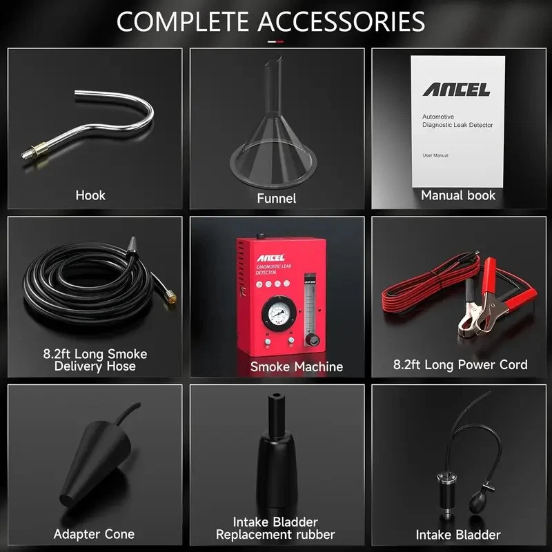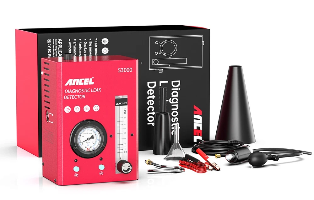 What ANCEL S3000 EVAP Smoke Machine Leak Tester Can Do for You? 1. Built-in Air Pump Saves Time and Money: ANCEL S3000 smoke machine automotive comes with tons of accessories that allow you to use it on just about any vehicle, unlike other EVAP smoke machines that you’ll have to buy an air compressor in addition to the detector in most cases to be able to test your vehicles for leakages, ANCEL S3000 smoke machine automotive already has that feature built-in. So you’re saving some extra money! 2. Dual Testing Model: ANCEL S3000 EVAP smoke machine come with a dual testing model including air mode and the smoke mode. Air Mode:Independent controlled built-air pump. Smoke Mode: Independent controlled smoke generator. These enable you detect the leaks precisely. 3. Instant Smoke Generation: Press Smoke Control switch, the LED Indication would turn GREEN, and the car smoke tester start to generate smoke within seconds. One of the biggest hassles with the automotive smoke machines is the time of heating of the device. You won’t have to wait for the tester to warm up with ANCEL S3000 smoke machine automotive. 4. Overload Protection: ANCEL S3000 automotive smoke machine leak detector has built in self-protective system:Overheat and Anti-frost Protection. When the temperature of the device exceeds 120℃, power protection will be intelligently activated to turn it off. The device can also work normally at -20℃. You don’t have to worry about switching on and off the machine constantly during diagnosis. The system takes care of the load for you. 5. Wide Compatibility: ANCEL S3000 smoke machine automotive used to detect leakage of pipe systems on automobiles, motorcycles, snowmobiles, ATVs, light trucks, and speedboats. The smoke machine automotive is suitable for all makes and models of cars. 6. Various System Test: Crankcase System Test; Intake System Test; Car Sealing Test; Fuel Tank System Test; Turbo System Test; EVAP System Test; Exhaust System Test; Various Pipe Fittings Test. (Note: Not applicable to air conditioning system piping, Lamp housing) It can quick to find evap leaks. 7. Save Money by Using Baby Oil or Mineral Oil: You don't need to buy expensive smoke oil. Use baby oil, Pure #5 white oil is the best choice if available. This makes ANCEL S3000 smoke machine automotive practically free to use forever! Full System Diagnostics, Don't Miss Any Leaks. ▶Crankcase System Test: excessive pressure or corrosion of the crankcase is the main reason to damage the seal of the crankcase and cause oil leakage. ▶Intake System Test: leakage in the air intake system will lead to insufficient intake of the car engine, which will result in scant engine power. ▶Car Sealing Test: poor airtightness of the car may lead to a lot of inconvenience like inability to keep warm dusty, not soundproof, and not waterproof , etc. ▶Fuel Tank System Test: possible reasons for the leakage of the fuel tank system: 1. There are gaps in the fuel tank and pipeline caused by improper installation. 2. The fuel tank cover is not sealed enough ▶Turbo Test: t he leakage of coolant would cause the engine to report high water temperature. ▶Various Pipe Fittings Test: automobile pipes can be classified according to their functions: brake hoses, power steering hoses, cooling system hoses, air conditioning system hoses, turbocharger hoses, fuel hoses, intake and exhaust system hoses. ▶EVAP System Test: Leakage of the fuel evaporation system will cause fuel vapor to leak into the atmosphere, causing waste and pollution or unstable engine idling ▶Exhaust System Test: Uncleaned harmful gases to be discharged into the atmosphere or increase vehicle noise is the main disadvantage when leaks happened in the exhaust. Smoke Machine Leak Status Indication Quick vehicle leak diagnosis by pressure display ?? NO Leak: When the value of the pressure gauge remains unchanged, it means that there is no leakage in the system. ?? Small Leak: When the value of the pressure gauge drops, it indicates a small leak in the system. ??Massive Leak: When the value of the pressure gauge reaches zero, it indicates a large leak in the system. Overheat & Anti-Frost Protection For detecting the leakage of pipe systems on cars,motorcycles,snowmobiles,off-road vehicles, ATVS,light trucks and speedboats,Suitable for all car models. ● Overheat Protection When the temperature of the device exceeds 75℃, power protection will be intelligently activated to turn it off. ● Anti-frost Protection The device can also work normally at -20℃. How to Use the Automotive Fuel Smoke Leak Detector? Notice before Leak Test: Turn OFF the Ignition of Your Vehicle ● Assemble the smoke machine with delivery hose, power socket and hook. ● Unscrew the oil filler cap and add test oil.(Pure #5 white oil is the best choice if available) ● Disconnect the pipes that need to be connected with the smoke leak detector. ● Connect your car smoke machine’s power cord to 12V vehicle battery (red clip to battery positive and black clip to a good ground, then the Power LED would be ON, if else check the power supply) ● Introduce the smoke delivery hose into the pipeline to be tested via the Adapter Cone. ● Press Air Control Switch, wait for seconds until the system is pressurized, check the Pressure Gauge & Flow Meter reading for leak status. Turn on the smoke generator, adjust the smoke amount to suitable amount so you can locate the leak position quickly. ● The leak can be judged according to where the smoke appears. ANCEL S3000 Packing Lists 1x ANCEL S3000 Main Unit 1x Power Cord: 1x Funnel 1x Hook up 1x User Manual 1x Intake Bladder 1x Adapter Cone 1x Replacement Rubber 1x Smoke Delivery Hose On Mar 2, 2026 at 10:53:39 PST, seller added the following information: