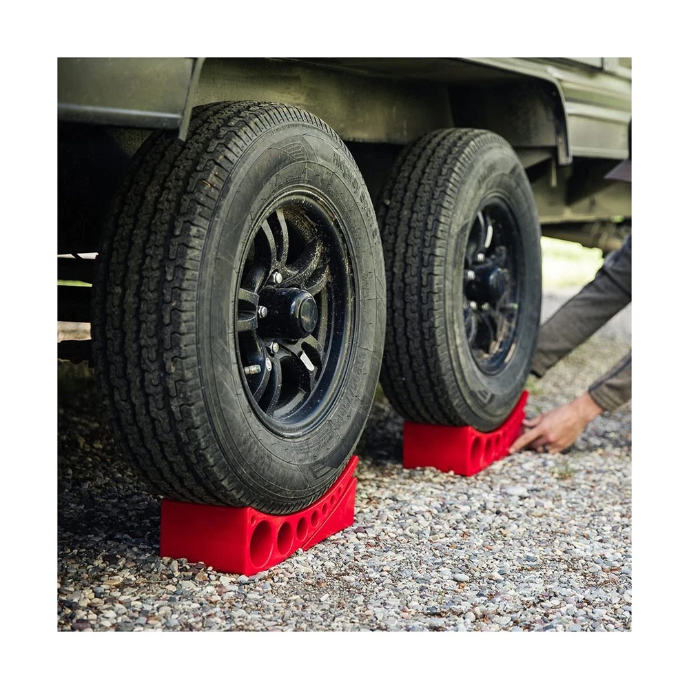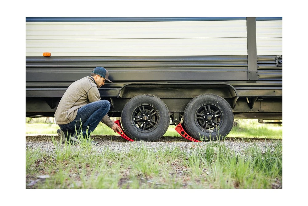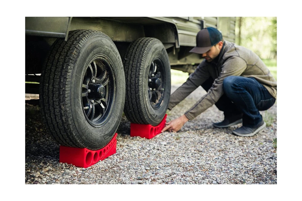 ANDERSEN HITCHES | 3604 2-Pack Camper Leveler Blocks w/Rubber mats and Sturdy Bag w/Double Handles | Camper Leveling System | Outdoor Camping Levels Description Features: [MUST HAVE FOR CAMPERS OR FIFTH WHEEL]: Works great on trailers up to 30,000 lbs and with tires up to 32" diameter. The Andersen Camper Leveler provides 'dead-on' leveling at any increment from 1/2" to 4" - no other leveler is this precise - or this easy to use! [RUBBER GRIP MATS INCLUDED]: Rubber grip mats help the levelers chock system to grip the ground to prevent the trailer or RVs from sliding when backing onto the camper leveler. [FAST & PRECISE LEVELING]: Avoid the hassle of setting up your camper with travel trailer leveling blocks or wooden planks under your tires. Make trailer leveling a fast and precise task. Simply level your trailer any increment between 1/2" and 4" in less than 5 minutes. [BUILT IN USA]: As a US-based company, we are here to create premier towing products that improve the journey from point A to point B. Thats why we dont just make hitches for trailers, we make hitches for people like you--the recreational travelers, hard workers, and avid sportsmen. [LIFETIME WARRANTY]: Andersen Hitches Plastic Towing Accessories are built to last. If you have any trouble for any reason at all, we will refund or replace this item for you. We hope that you enjoy using our products! These products are 100% made in the USA and come with a LIFETIME WARRANTY! Product Details: Load Capacity: 30000 pound Maximum Lifting Height: 4 Inches Brand: Andersen Hitches Color: Red Manufacturer: Andersen Hitches Load Capacity: 30000 pound Maximum Lifting Height: 4 Inches Brand: Andersen Hitches Color: Red Manufacturer: Andersen Hitches UPC: 871155009886 Model: Camper Leveler Item Weight: 13.67 pounds Package Dimensions: 15.39 x 9.13 x 6.85 inches Item model number: 3604-RTBA Is Discontinued By Manufacturer: No Manufacturer Part Number: 34 Date First Available: October 27, 2017 Delivery We Do Not Ship Outside of the Continental US. Return Policy All items qualify for returns within 30 days of receipt. Seller is responsible for return shipping on any item that is not damaged. Feedback We take our reputation seriously, we buy and sell online, so we understand the value of trust. If you are unsatisfied with your order, please contact us and we will work with you to resolve it to your satisfaction.