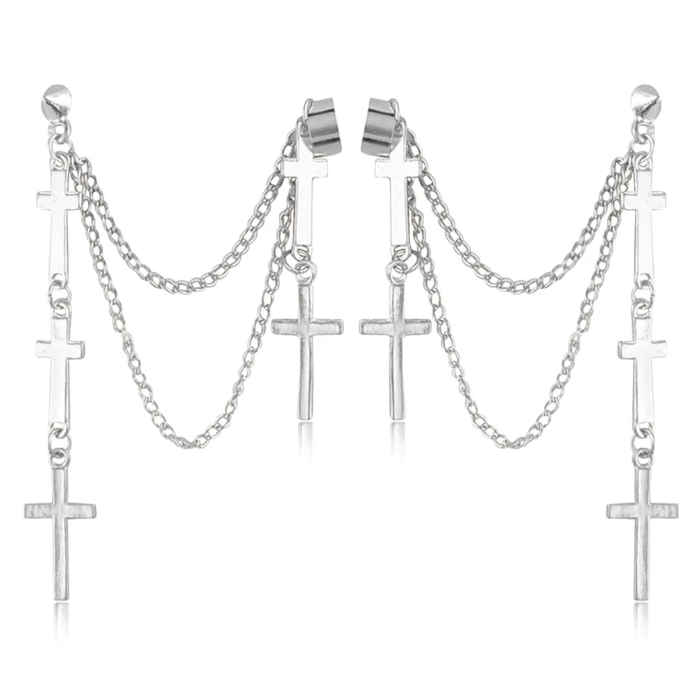 ANDPAI Personalized Multi Layered Long Stainless Steel Cross Chain Dangle Earring Threader Tassel Ear Cuff Black Punk Drop Earring for Women Men Statement Jewelry Gifts (Silver) ❤ Material: high-quality alloy, weight: 8.5G grams. Long chain: 14cm long. The short chain is 11cm long. A well-coated surface; absolutely smooth and smooth; do not scratch your skin or clothes; ❤ Gift: religious design with cross-shaped symbols, good health and happiness, is an awesome gift for people moved by God. ❤ Unique fashion design: Suitable for all ages, stylish and elegant appearance. Easy to wear and will not burden you; exquisite gifts for Christmas, Easter, Valentine's Day, Halloween, birthdays, weddings and ceremonies. ❤ Occasion: Very suitable for Halloween Cosplay Christmas Easter birthday anniversary school party. ❤ INTIMATE AFTER SALE SERVICE: You will receive One Piece earrings. We offer a 45-day money-back guarantee. If you have any questions, please send us an email. Description Dear customers,welcome to ANDPAI Jewelry Store,we are so honored to serve for you If you have any question,pls don’t hesitate to contact with us. you can send us an Email,we will reply you within 12 hours About Our Jewelry -Most of our jewelry are made by alloy stainless steel copper,plated by Gold Silver Rose Gold or Platinum,and other material like zirconia ,imitation pearl ,imitation gemstone,opal, rhinestone,we used for jewelry. -If you have any opinion on our product,pls tell us,if you are not satisfied with our product or service,pls tell us,we will try our best to satisfied you. Tips of Jewelry Maintenance and Protection 1) Please avoid contact with harsh chemicals 2) Please avoid wearing while showering/ sleeping 3) Please don't wear a long time, often replace your jewelry in summer 4) Frequent cleaning is necessary. Please use a soft brush to wipe the surface of the accessory and remove its surface stains Shipping We offer FREE shipping on all orders! We use a selection of shipping services such as UPS, FedEx, USPS etc. We only ship to the lower 48 states, no APO/FPO addresses or PO Boxes allowed. Local pickups and combined shipping options are not provided at this time. Return You can return a product for up to 30 days from the date you purchased it. Any product you return must be in the same condition you received it and in the original packaging. Please keep the receipt. Payment We accept payment by any of the following methods: PayPal Please pay as soon as possible after winning an auction, as that will allow us to post your item to you sooner! Feedback Customer satisfaction is very important to us. If you have any problem with your order, please contact us and we will do our best to make you satisfied. Contact Us If you have any queries, please contact us via ebay. We usually respond within 24 hours on weekdays. Please visit our eBay store to check out other items for sale! Thank you for shopping at our store.