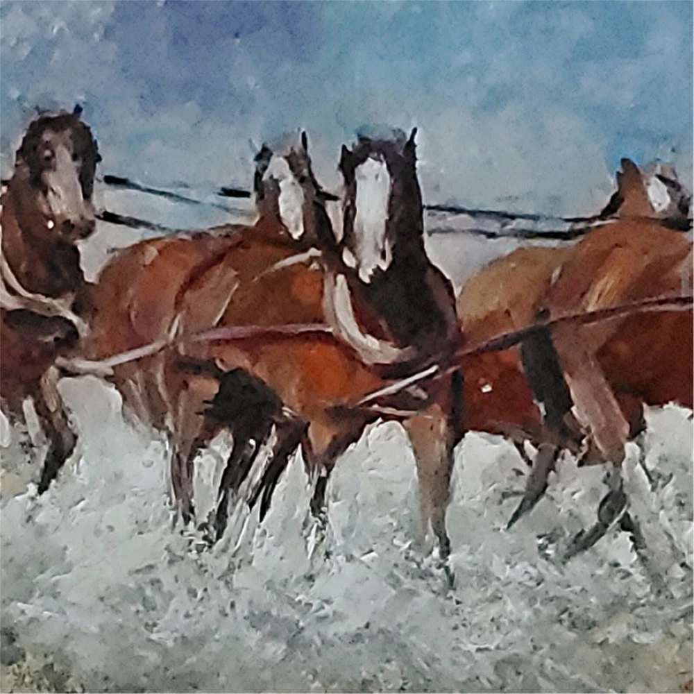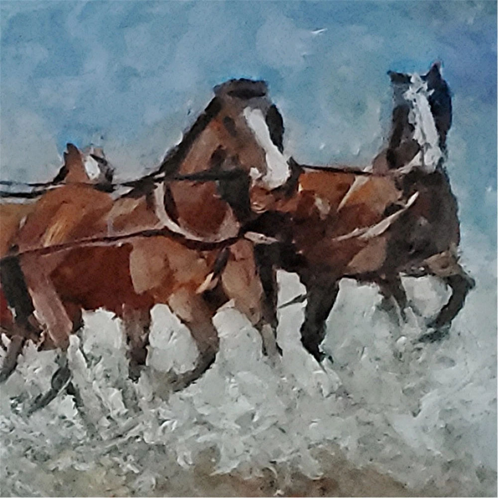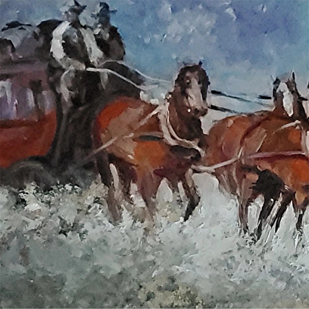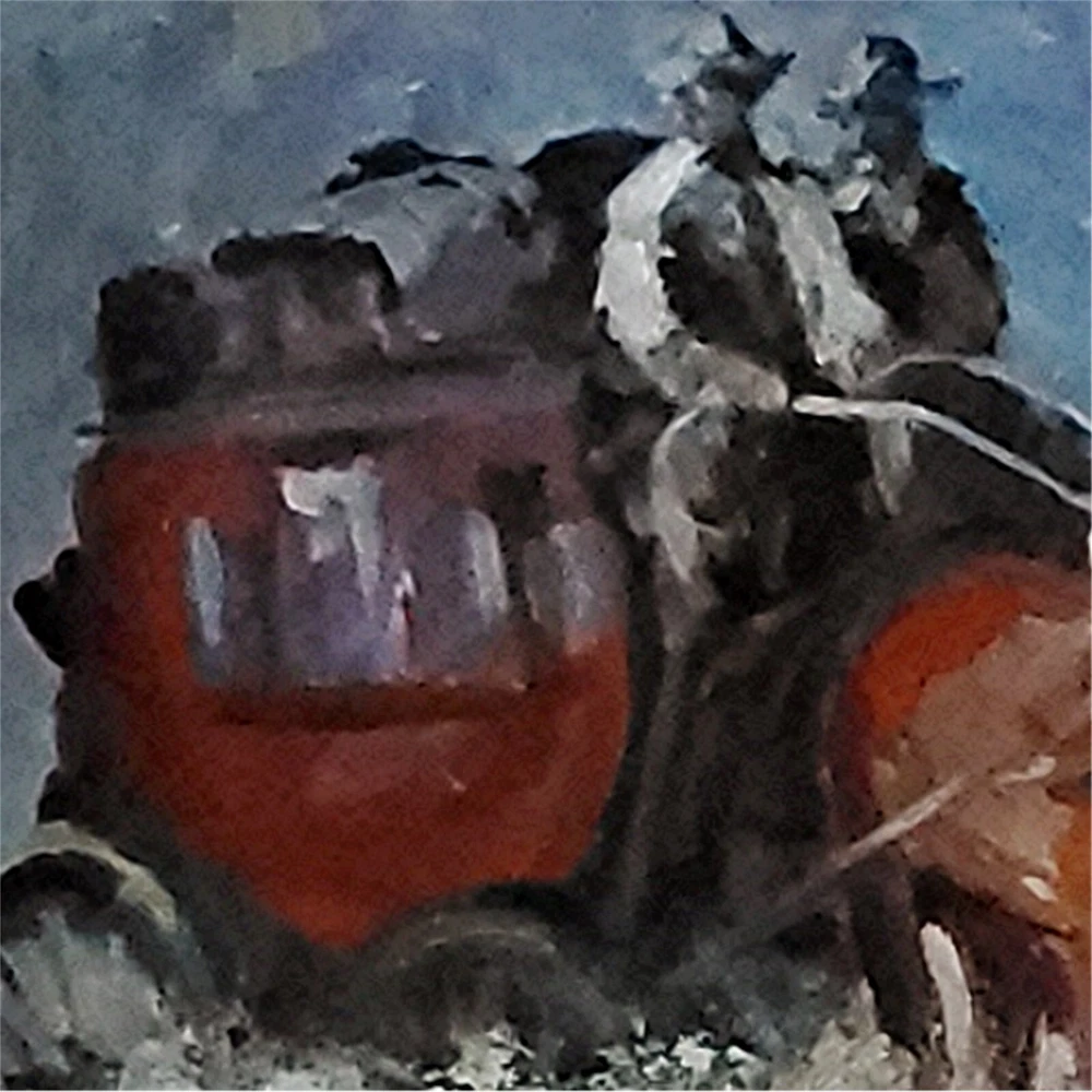 Embrace the spirit of the West with Andre Dluhos's original oil painting titled "Butterfield Stage." Capturing the essence of equestrian life and historic charm, this piece measures an impressive 16 inches in height and 34 inches in width, making it a striking addition to any collection. Dluhos's masterful use of color and texture brings to life the enduring image of the Western stagecoach, inviting viewers to experience the artistry of a bygone era. Crafted on a wooden panel, this oil painting is a one-of-a-kind creation dated 2023, reflecting the contemporary artistry of the modern period. It is signed by the artist, ensuring its authenticity, and comes with a Certificate of Authenticity for added assurance. Unframed, it presents an opportunity for collectors to work with their preferred framing options, tailoring the presentation to their unique preferences. Original oil painting titled "Butterfield Stage" COA issued and included SIZE 16" x 34" Painting is on prepped panel, fully varnished and ready to frame. Signed, dated, and titled on back of painting. Schooled in the fine art academies of Europe, and nearly 70 years of professional artist experience, Andre presents a bold, palette knife style with heavy texture and a decidedly modern take on the impressionist style. Buy directly from the studio and invest in a timeless piece of fine art. Collectors from all over the world own Andre's artworks. From corporate and public spaces, to private collections and home decor, Andre's work is renowned globally. Whether for yourself or as a present for someone special, a painting is a timeless gift that will serve as a memory for a lifetime. feb 9, 2025 .