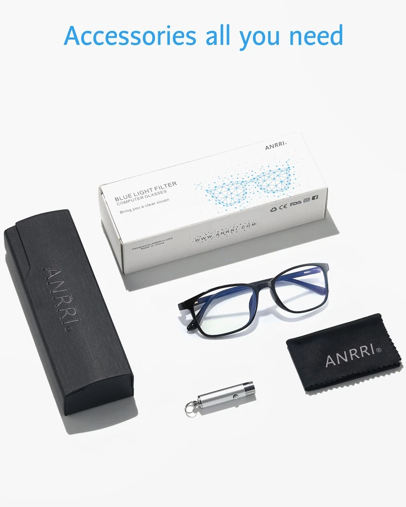 ANRRI Blue Light Blocking Glasses Anti Eyestrain UV Filter Computer Game Eyeglasses Lightweight Frame Stylish Design: Anrri black square Frame minimalist blue light blocking glasses feature a sleek and timeless design that is suitable for both men and women. The black square frame adds a touch of elegance to your look. Effective Blue Light Protection: Designed to protect your eyes from harmful blue light, these glasses utilize advanced technology to filter out the blue light emitted by digital screens. By reducing eye strain and fatigue, they promote comfortable and healthier screen time. Lightweight and Comfortable: We prioritize your comfort, which is why Anrri glasses are designed with a super lightweight frame. You can wear them for extended periods without feeling any discomfort or heaviness. Unisex Fit: The unisex design ensures that these glasses can be comfortably worn by anyone, regardless of gender. They are designed to fit a wide range of face shapes and sizes, providing a versatile and inclusive option for all. Versatile and Practical: Anrri glasses are not only protective but also versatile in style. You can effortlessly pair them with various outfits and occasions, making them a practical and fashionable accessory for everyday use. Experience unparalleled comfort and protection with Anrri blue light blocking glasses. Expertly crafted to reduce eyestrain, these glasses feature advanced blue light filtering technology that helps you stay focused and energized, whether you're coding, designing, or binge-watching your favorite shows. Anrri glasses come with ultra-lightweight frames that ensure maximum comfort for all-day wear, making them ideal for both men and women. Their stylish design transitions seamlessly from screen time to social time, allowing you to wear them effortlessly in any setting. The glasses are thoughtfully packaged in a premium case, complete with a lens cloth and a unique testing card and light, so you can see the blue light blocking capabilities for yourself. Our glasses are designed not only to protect your eyes from harmful blue light but also to enhance your overall well-being. They aid in better sleep, reduce glare, and are available at a price that won’t break the bank. Whether at home, in the office, or on the go, keep a pair of Anrri glasses wherever you need them most. Choose Anrri for a blend of style, comfort, and cutting-edge technology that keeps your eyes safe and your vision clear. Shipping We offer FREE shipping on all orders! We ship within Three business days of payment, usually sooner. We use a selection of shipping services such as UPS, FedEx, USPS etc. We only ship to the lower 48 states, no APO/FPO addresses or PO Boxes allowed. Local pickups and combined shipping options are not provided at this time. Return You can return a product for up to 30 days from the date you purchased it. Any product you return must be in the same condition you received it and in the original packaging. Please keep the receipt. Feedback Customer satisfaction is very important to us. If you have any problem with your order, please contact us and we will do our best to make you satisfied. Contact Us If you have any queries, please contact us via ebay. We usually respond within 24 hours on weekdays. Please visit our eBay store to check out other items for sale! Thank you for shopping at our store.