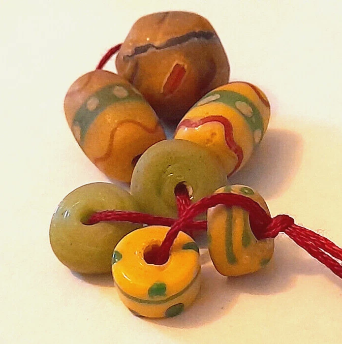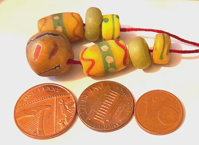 Up for sale here are beads made in Italy for the Venetian-African trade market. Lovely, satin matte finish that comes with age and much handling. Beautiful very old beads, with great patina and wear which I have tried to show in the photos. It is to be expected with circulated beads of their age. Please view the photos which been taken under high magnification to show the full condition of the item. I am an experienced seller of antique and vintage jewellery. As an art history graduate specialising in sentimental antique jewellery with cultural importance, and with goldsmithing training, I have been trained to assess the quality and fineness of precious metal items. Please see the photos; they form part of the description and show the size in centimetres or millimetres and the weight in grams where weighed. Please bid with confidence and view my feedback, where you will see that I have received positives for other valuable items of this age and older, and have sent antique jewellery all over the world with no problem. Items will be securely packed and sent swiftly by a trackable service. In the unlikely event that my description does not meet your expectations, I am happy to accept returns provided that items are returned in the same condition as I sent them and are sent via a trackable service, at the purchaser's expense. If you have any queries, please do get in touch. Thanks for looking!