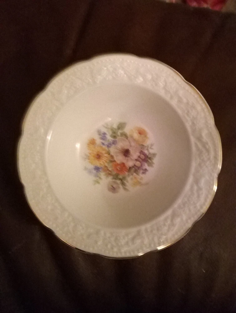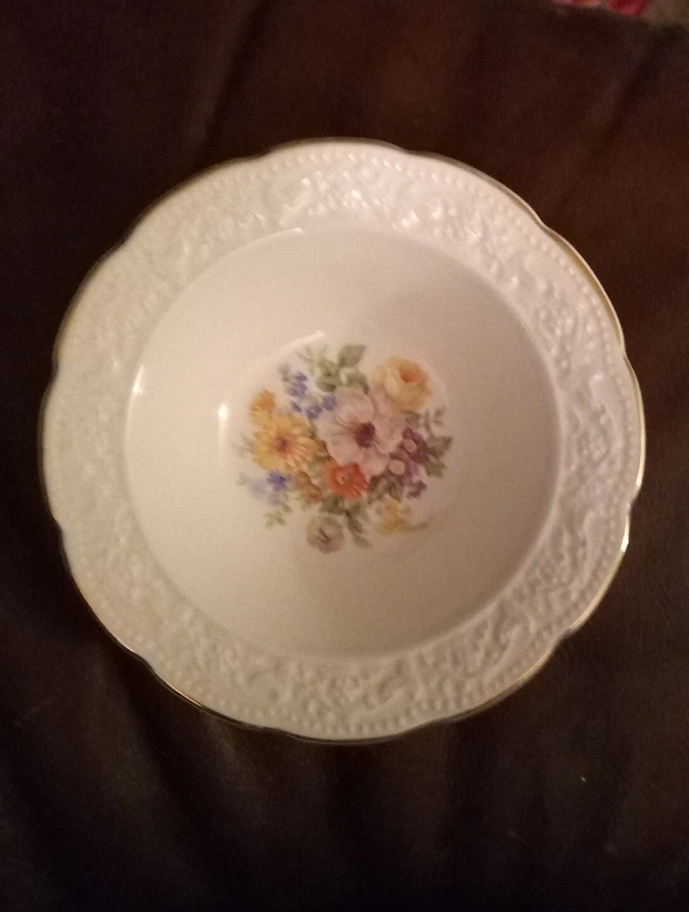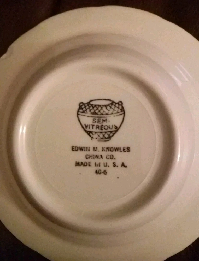 EDWIN M. KNOWLES CHINA CO. FIVE BEAUTIFUL FRUIT BOWLS FROM 1940 MADE IN USA 40-6 SEMI VITREOUS. NO CRAZING MARKS LOOK NEW 5 1/2 INCHES THANKYOU FOR VIEWING