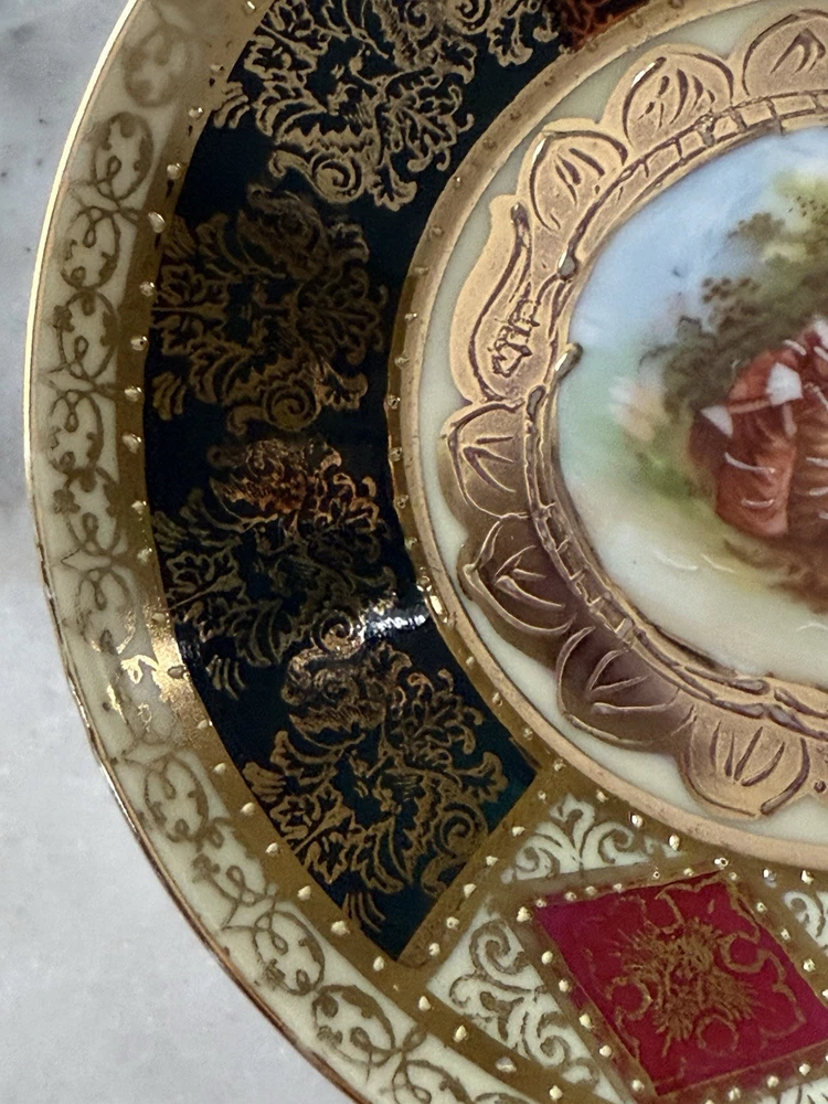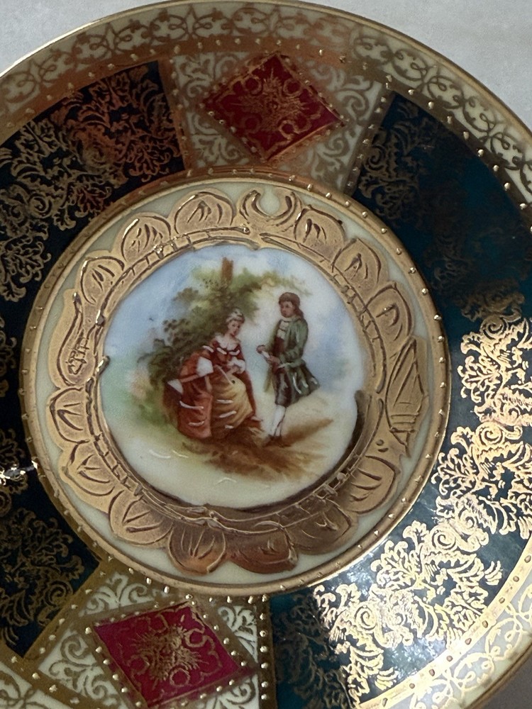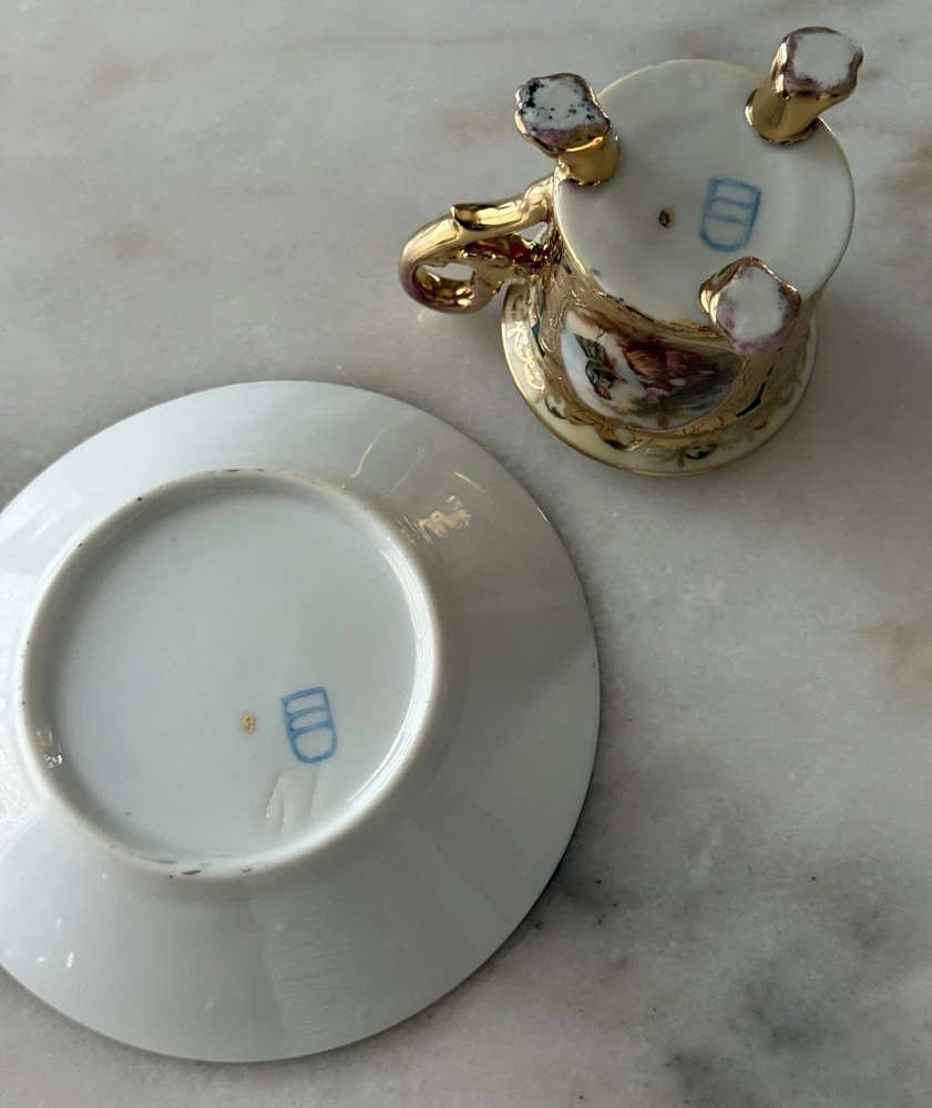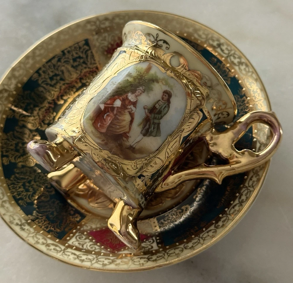 This charming cup and saucer for strong coffee in excellent condition, with an image of a love scene, will complement the refined taste of lovers and connoisseurs of collectibles.