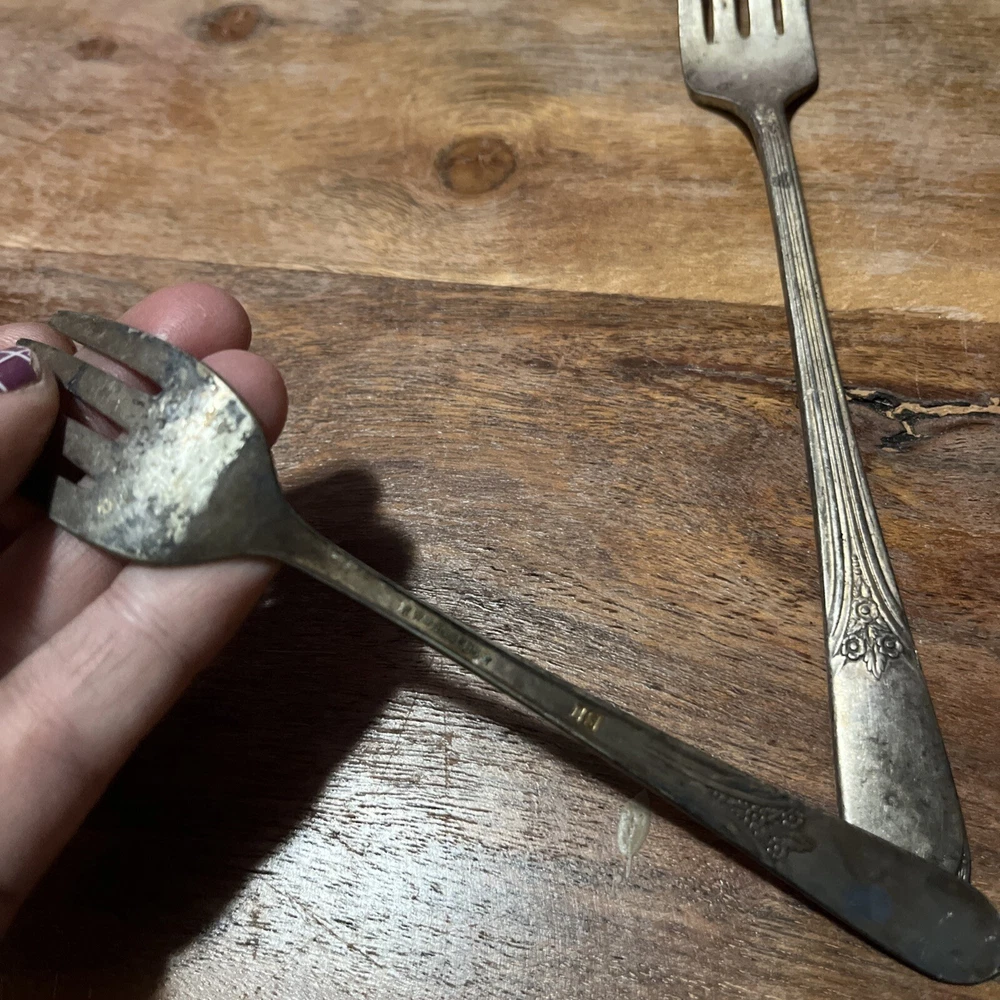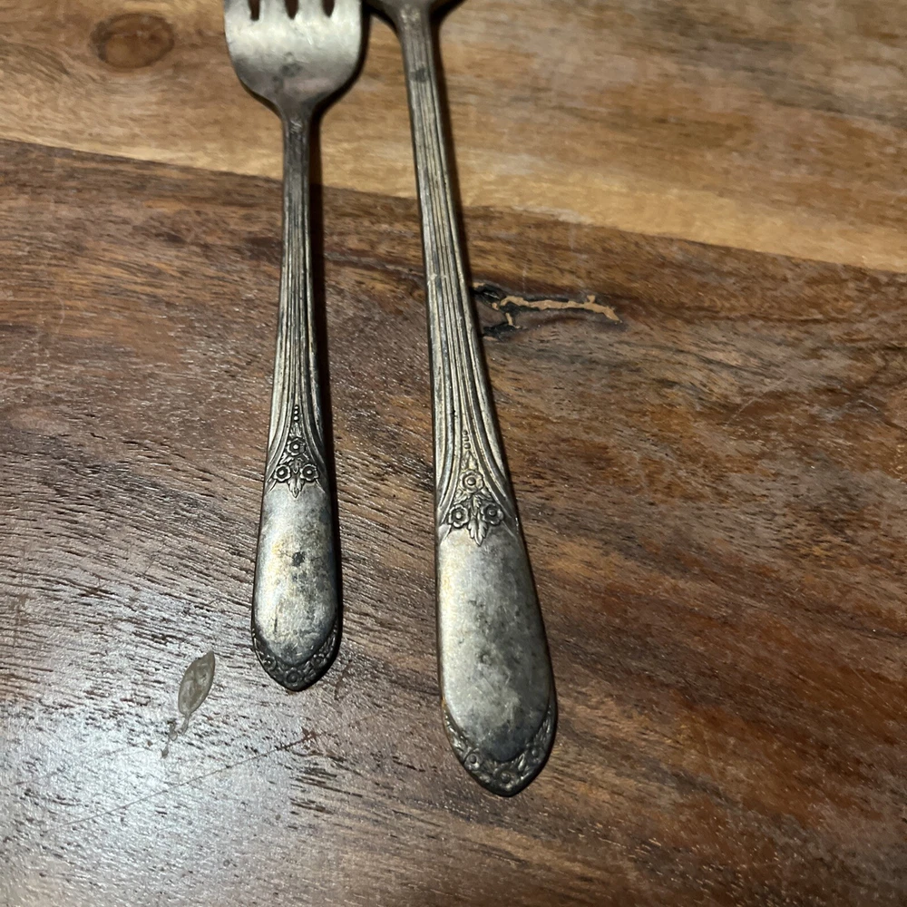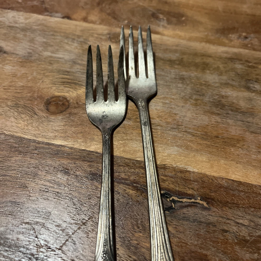 Crafted with the elegance of yesteryear, this vintage collectible fork set from WM Rogers Mfg Co is a testament to classic tableware. The set includes a 7.25" grande forks and a 6" companion piece, both fashioned from high-quality silverplate. With their roots in the first half of the 20th century, between 1900 and 1940, these forks carry with them a historical charm that is sure to grace any collection or dining experience. The forks feature the intricate craftsmanship characteristic of the period, and while unbranded, their design and quality speak to the renowned standards of WM Rogers. Whether used for special occasions or displayed as part of a silver legacy, these silverplate forks are a beautiful addition to any assortment of antique silverware.