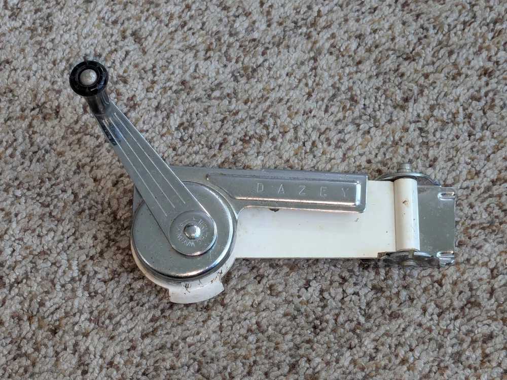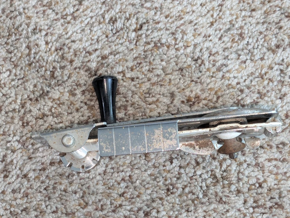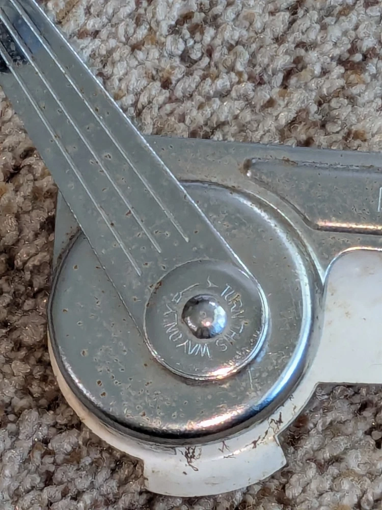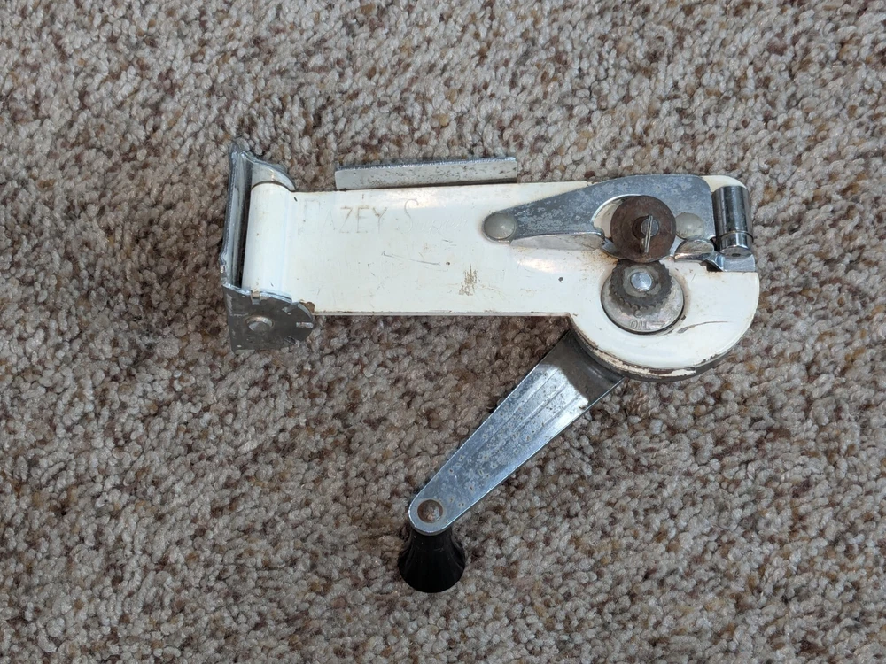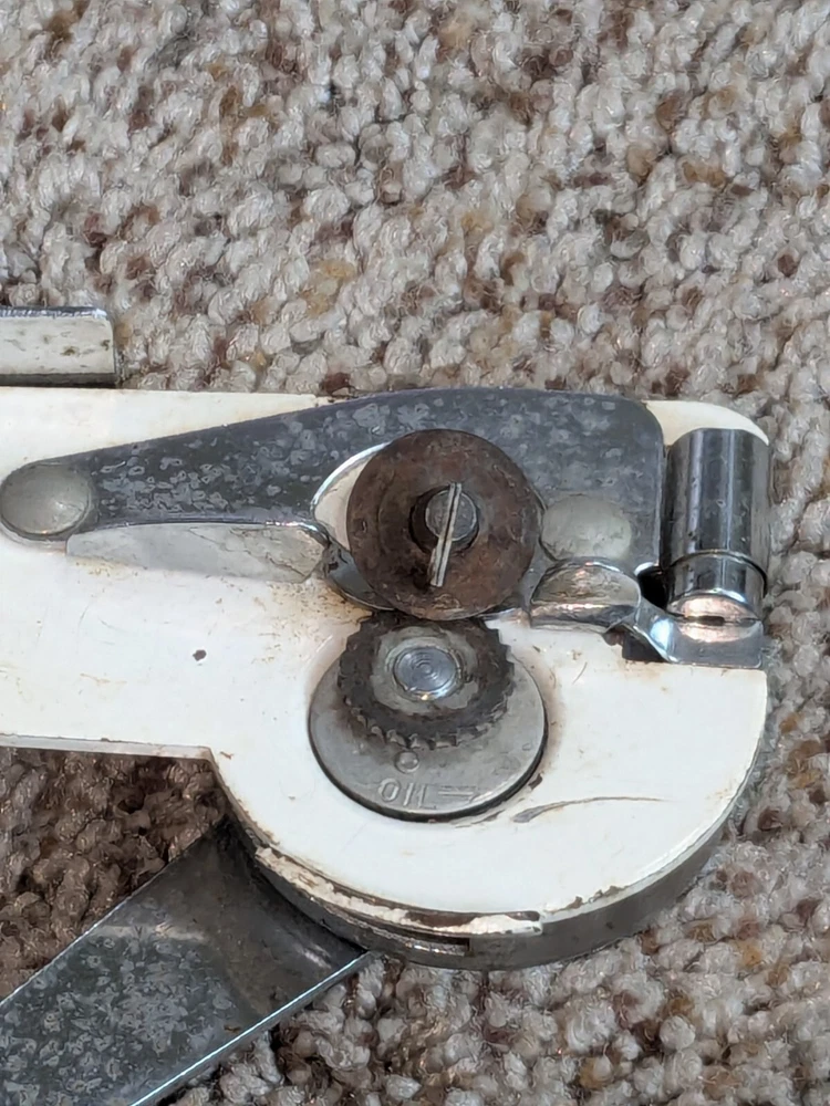 The photos show everything. I am not sure of the age, definitely old, vintage, possibly antique. I am guessing from the 1950s, but I do not know, it could be earlier. It comes exactly as you see it, in the condition. Show. Turns all the way around, as intended. Not try to open a can with it, so I can only assume that it works properly, I cannot guarantee it. You get exactly what you see in the photos. The photos are the description and they show the condition. Please use the zoom feature and ask any questions you may have. THIS WILL SHIP USING UPS, FEDEX OR USPS, WHICHEVER I SELECT AT TIME OF SHIPPING.