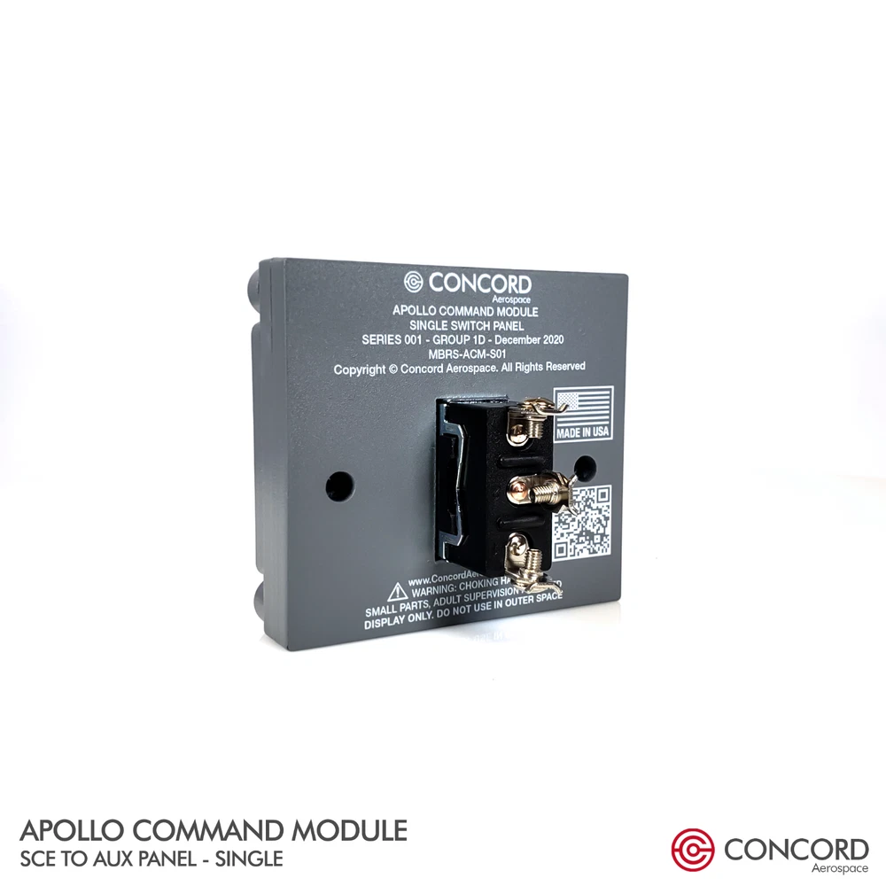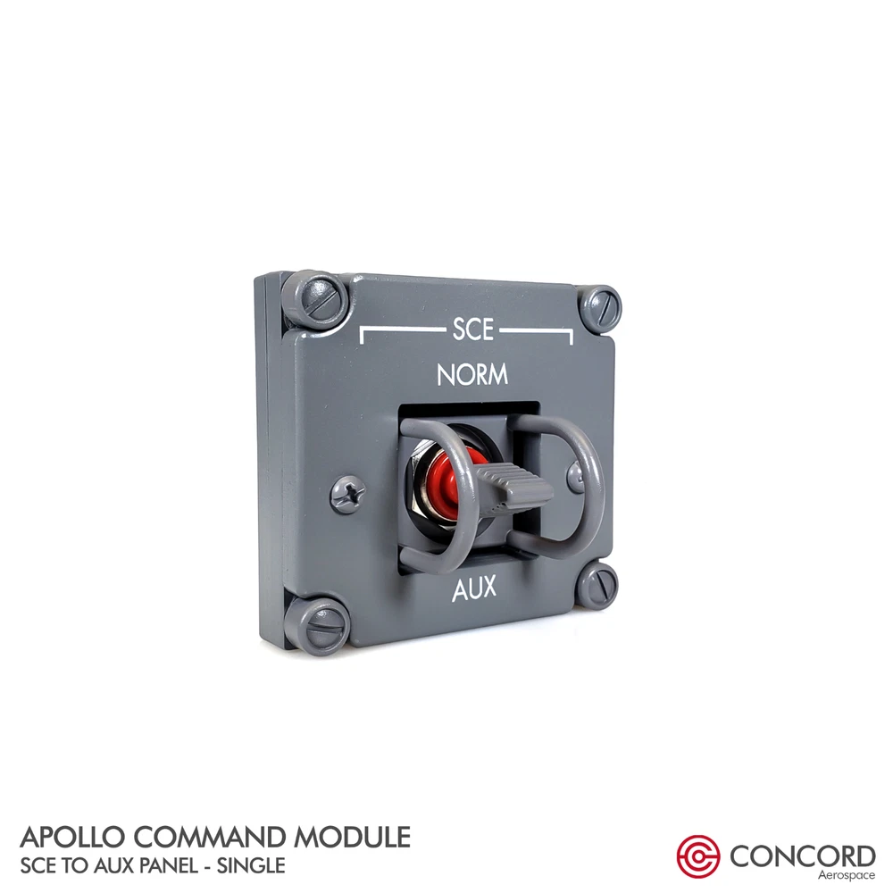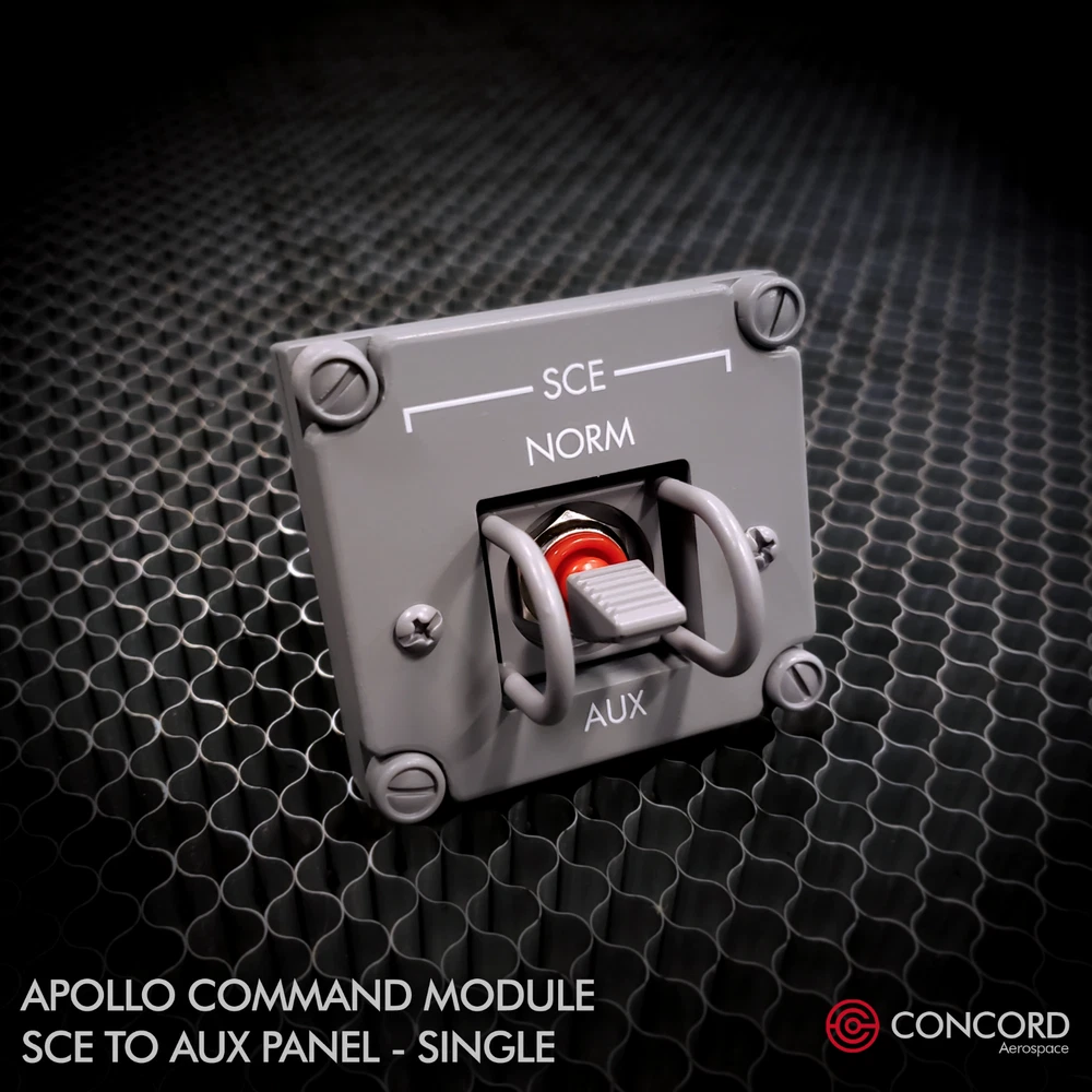 APOLLO COMMAND MODULE SINGLE SWITCH PANEL - SCE TO AUX UPDATE: DUE TO HIGH DEMAND, THESE UNITS ARE TAKING SLIGHTLY LONGER TO MANUFACTURE. PLEASE ALLOW FOR ONE WEEK BEFORE SHIPMENT. WE ARE RAPIDLY INCREASING OUR PRODUCTION CAPABILITIES AND THANK YOU FOR YOUR UNDERSTANDING AND PATIENCE. THERE WILL BE A DISCOUNT INSIDE YOUR PANEL BOX ON ARRIVAL FOR ANY FUTURE PURCHASES. Apollo Command Module Switch includes: Multi-layer switch assembly. One toggle switch. Accurately sized switch guards and bezels. Custom fabricated toggle red switch boots. Reproduction DZUS for enhanced visuals. 3" x 3" x 3" Important usage warning: Although the switch panel is sold as memorabilia & display unit, it includes industrial grade toggle switch hardware as a part of its design. We utilize these components within our simulation projects and wire them in order to make the switches operational. In the case of powered operational use, the owner assumes all risk and liability for proper installation of this product. Concord Aerospace is not liable for any damages caused by the incorrect use or faulty wiring. Makes a great gift for any Space Enthusiast and collector. Feel free to contact us if you would like customized switches/panels from different panels or aircraft. SCE to AUX Component History: On November 14, 1969, Apollo 12 successfully launched to the Moon. But it wasn’t without a little drama. The weather that day at Cape Canaveral in Florida was overcast with light rain and winds, but at 11:22 am EST, the spacecraft, carrying astronauts Pete Conrad, Dick Gordon, and Alan Bean, blasted off into the clouds. Thirty-seven seconds into launch, all hell broke loose. “What the hell was that?” asked Gordon. Twenty seconds of confusion ensued, and then another disturbance occurred. “Okay, we just lost the platform gang,” reported Conrad, “I don’t know what happened here. We had everything in the world drop out.” The crew and Mission Control didn’t know what had happened, and only later determined the Saturn V rocket had been struck by lighting – twice. Were it not for flight controller John Aaron, the mission might have been aborted. Aaron may be remembered more for being instrumental in helping to save Apollo 13, but the part he played in Apollo 12 was just as crucial. When he saw the unusual telemetry readings from Apollo 12, he remembered a flight simulation that took place about a year earlier, where similar telemetry showed up. He recalled this simulated anomaly concerned an obscure system called Signal Conditioning Equipment (SCE), and remembered normal readings were restored by putting the SCE on its auxiliary setting, which meant that it would run even under low-voltage conditions. So when he quickly called out the recommendation, “Flight, try SCE to ‘AUX'”, most of his mission control colleagues had no idea what he was talking about. Both the flight director and the CapCom asked him to repeat the recommendation. Pete Conrad’s response to the order was, “What the hell is that?” Fortunately Alan Bean was familiar with the location of the SCE switch inside the capsule, and flipped it to auxiliary. Telemetry was immediately restored, allowing the mission to continue. This was just one instance that earned Aaron the compliment of being called a “steely-eyed missile man,” the absolute highest of NASA compliments. And even today — among us geeks — the phrase “SCE to AUX” used to describe a situation where one narrowly averts a catastrophe by coming up with an ingenious plan.