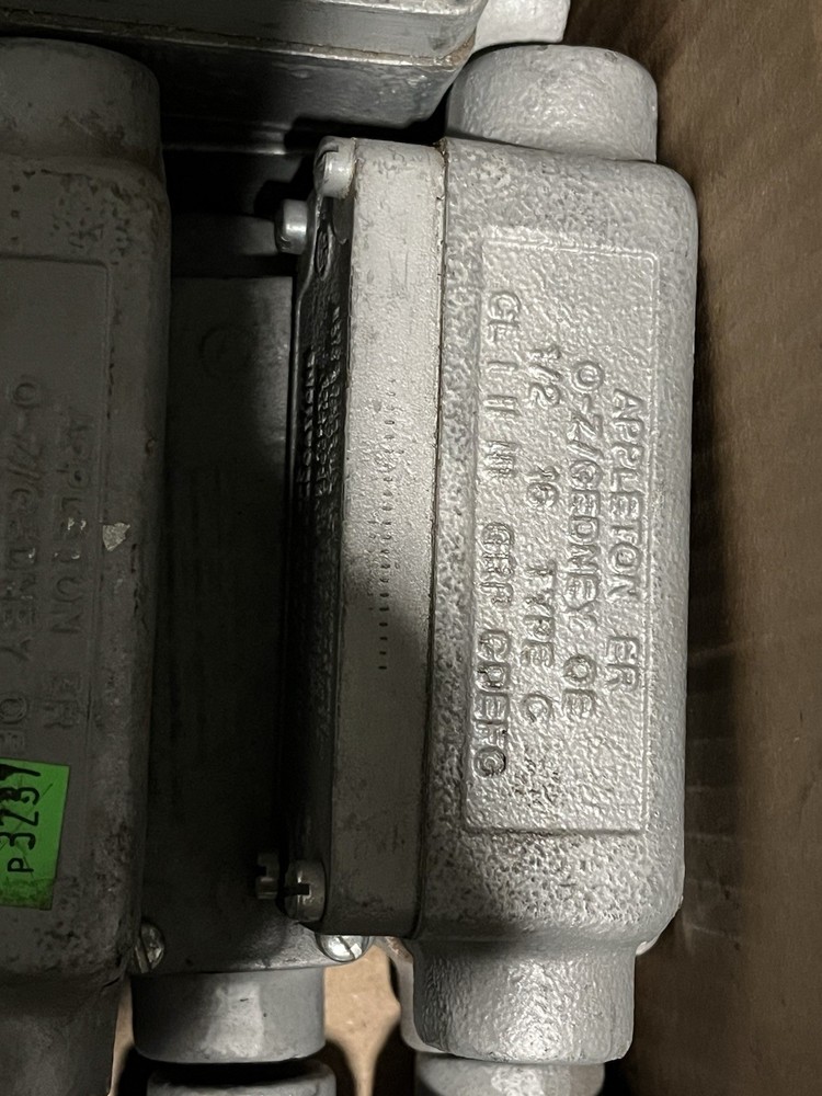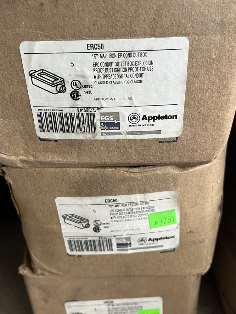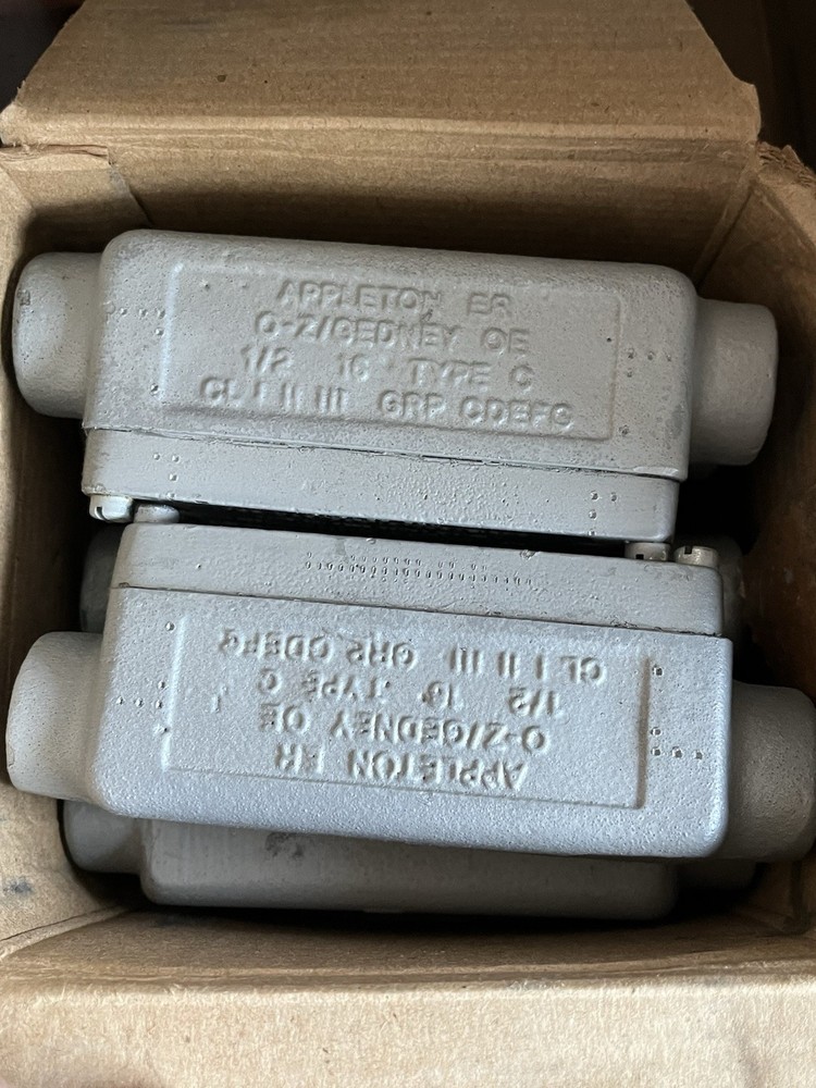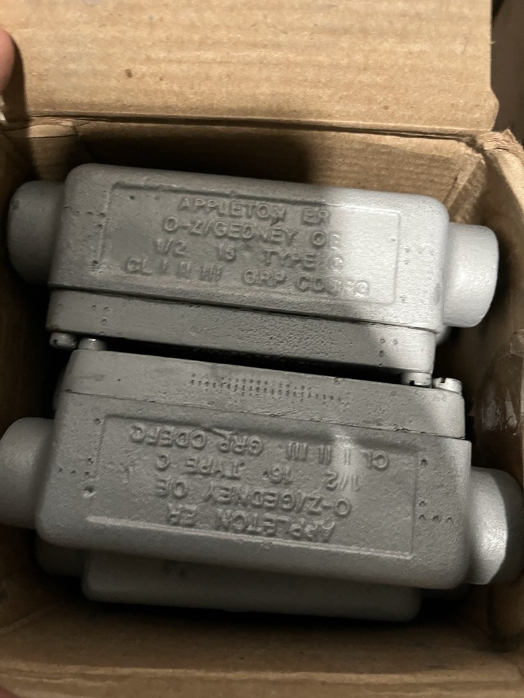 SELLING NEW LOT OF 27 ERC50 1/2" EXPLOSION PROOF IRON CONDUIT OUTLET BODY FITTINGS & COVERS SOLD AS IS