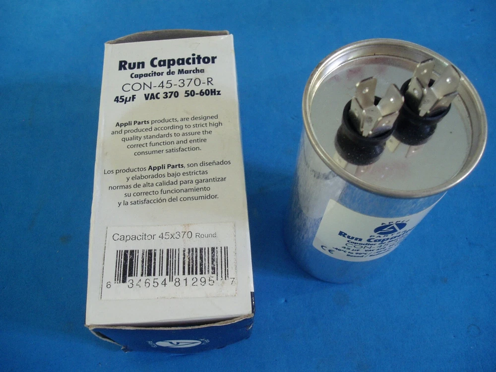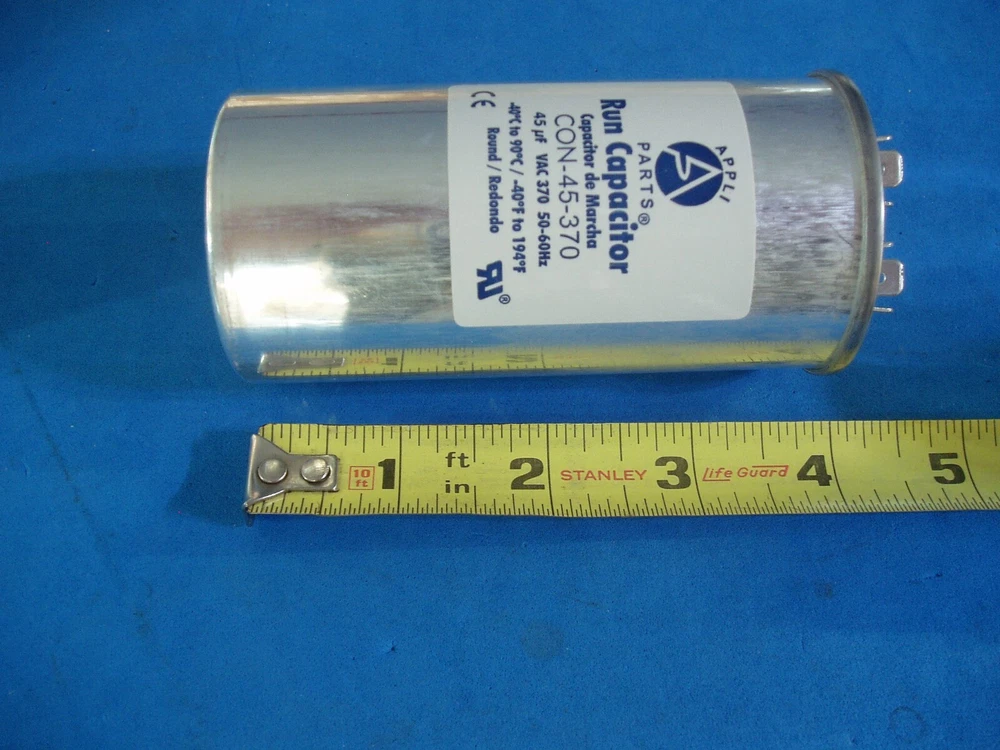 This is a brand new run capacitor. This capacitor is made by Appli Parts. 45uf mfd vac 370 50-60Hz Model #CON-45-370-R There is a small dent in the middle as seen in the last photo. Please visit my store! Thank you for looking! (B33)