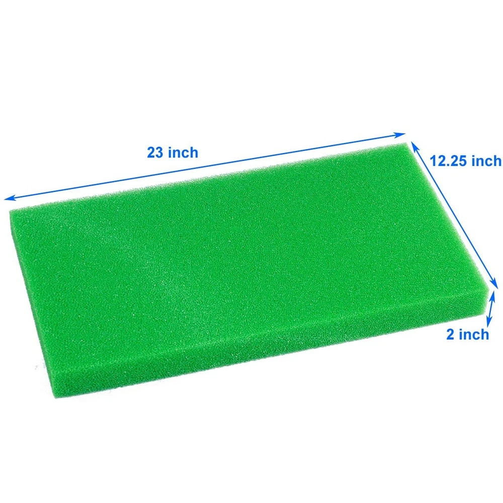 AQUANEAT Aquarium Filter Sponge Open Cell Foam Sheet Bio Sponge Filter Media Pad HMF Fish Tank Sump Divider 11" x 10.25" x 2"/ 23" x 12.25" x 2" (23" Lx 12.25" W x 2" H, Green) Product Details Size: 23" Lx 12.25"W x 2"H Color: Green Brand: AQUANEAT MPN: Does not apply UPC: Does not apply EAN: Does not apply Is Discontinued By Manufacturer : No Package Dimensions : 12.13 x 11.46 x 1.3 inches; 8.47 ounces Date First Available : January 10, 2018 Manufacturer : AQUANEAT Best Sellers Rank: #21,781 in Pet Supplies (See Top 100 in Pet Supplies) #227 in Aquarium Filter Accessories #227 in Aquarium Filter Accessories Customer Reviews: 4.7 4.7 out of 5 stars 1,367 ratings Item Weight: 8.4 ounces Manufacturer: AQUANEAT Date First Available: January 10, 2018 Item Package Dimensions L x W x H: 12.13 x 11.46 x 1.3 inches Brand Name: AQUANEAT Color: Green Size: 23" Lx 12.25"W x 2"H Dimension: 23" Lx 12.25"W x 2"H, PPI: 30 green medium The open cell sponge has a much larger inner surface area for filtration capacity. This filter pad can be cut to fit and used as a pre-filter for any aquarium or pond filter, sump, wet/dry, canister, power filter etc. or your HMF DIY project. The reticulated structure also provides better flow rate of water and less chance of clog. The size of pores is measure in pores per inch (PPI). The sponge with higher PPI has more pores in it. More pores means larger filtration capacity but with less water flow through rate and needs to be cleaned more often. It is recommended to use combination of sponge with difference PPI to get the best result.