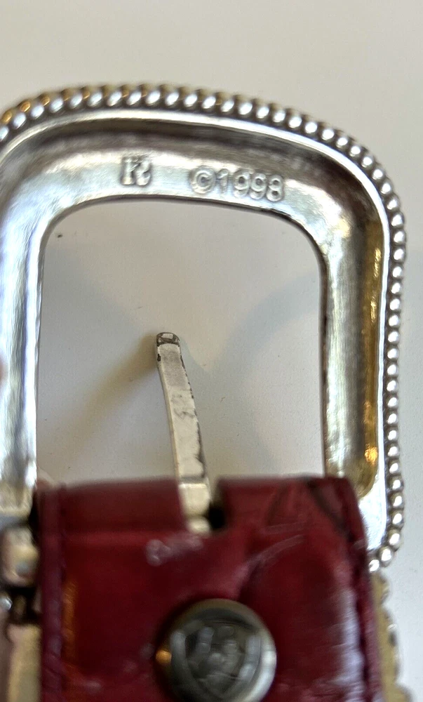 ARIAT Red Leather Belt 26/65 Silver Buckle Western Roper Wrangler Horseback Very good pre-owned condition. Some wear on the buckles. See photos.