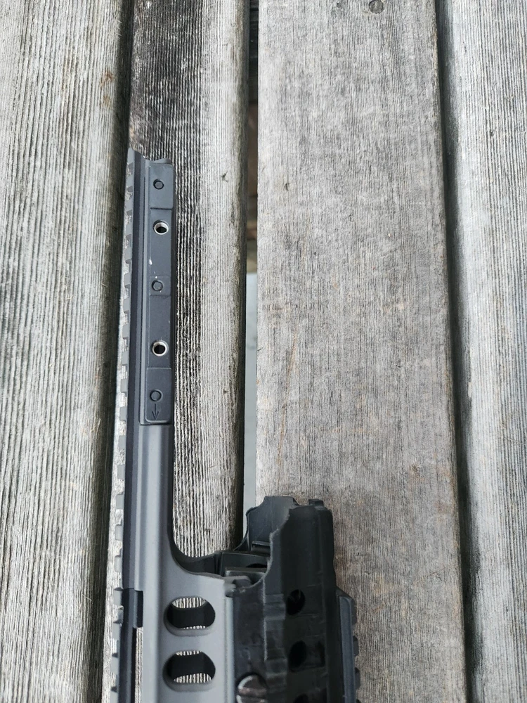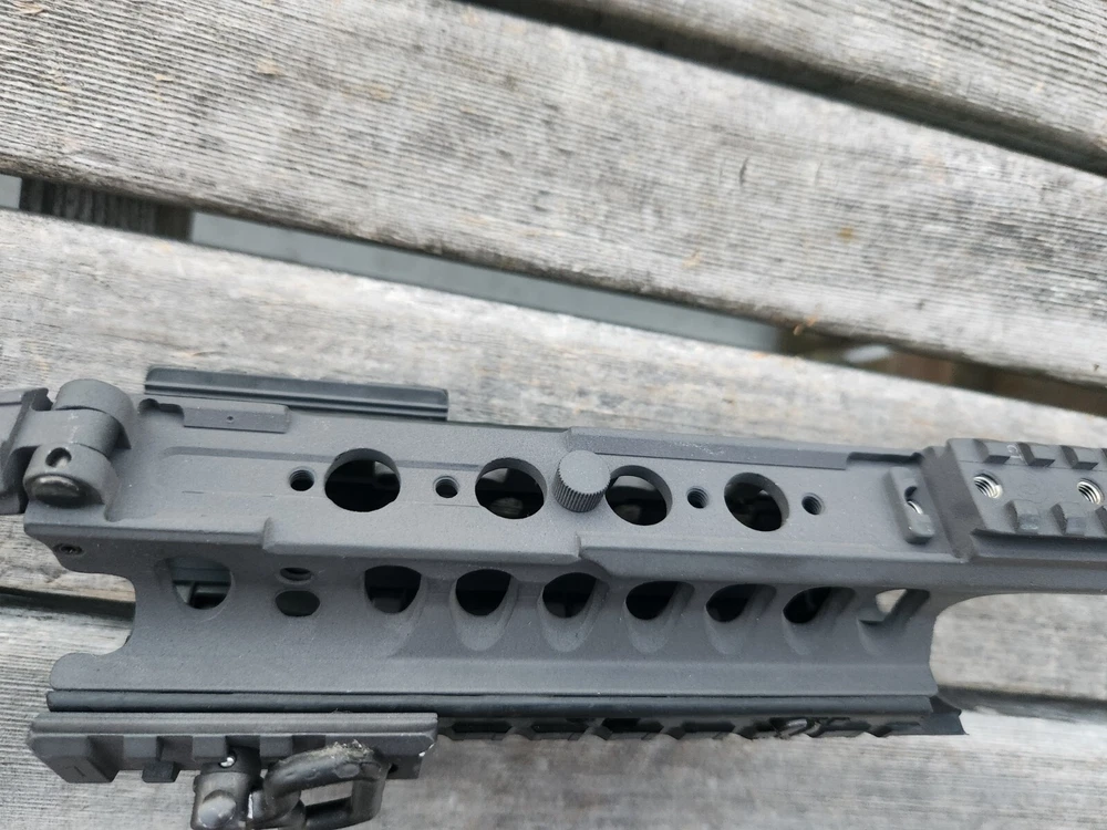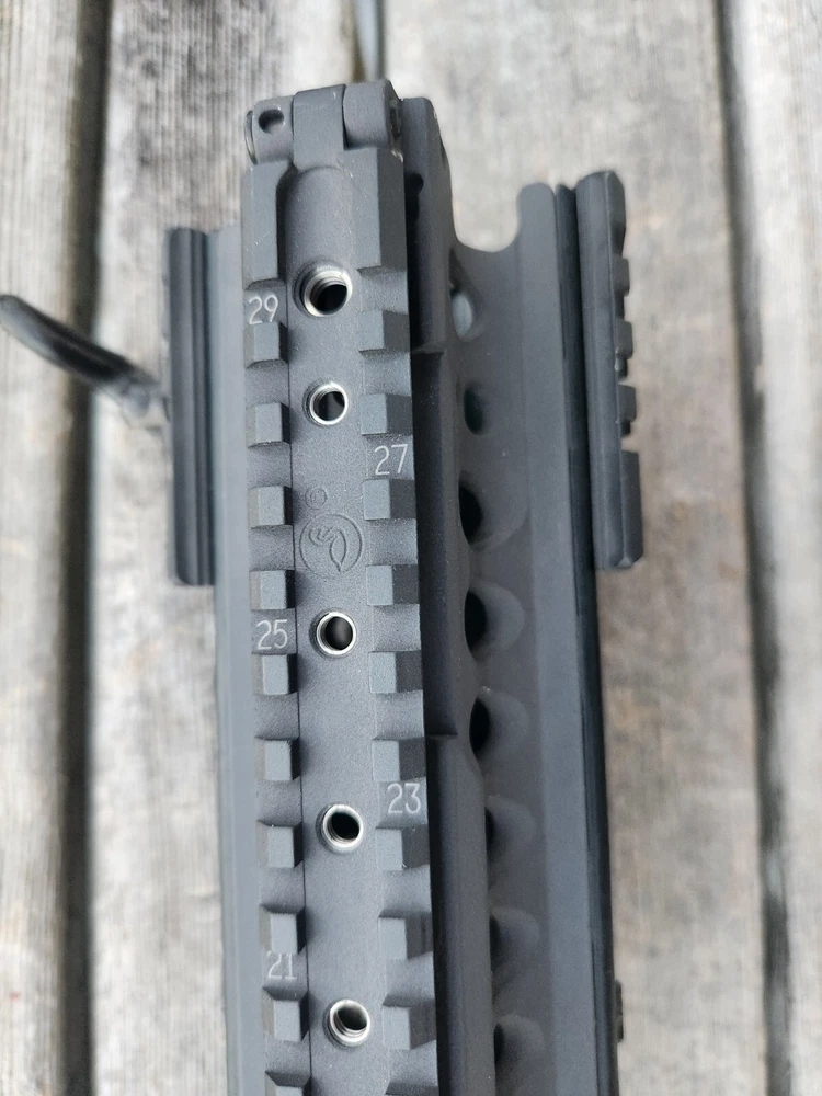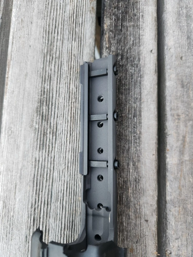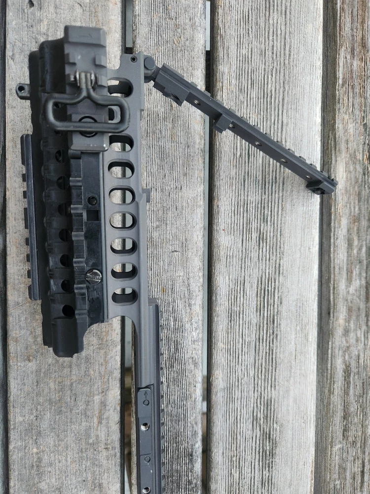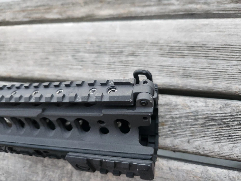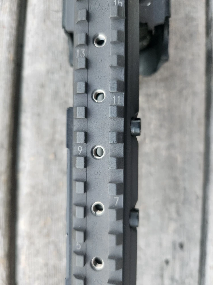 very hard to find ARMS 45C rail and mount. also has a PEQ-2 flip up section! these rail are very sought after. A.R.M.S flat top mount. Carbine length rail. all hardware is present to mount. look at photos for description and condition. thank you!