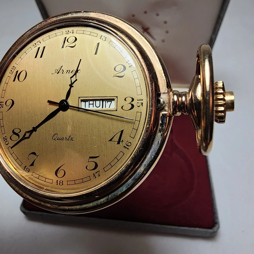 ARNEX Gold Plated Quartz Pocket Watch with Stylish Dial