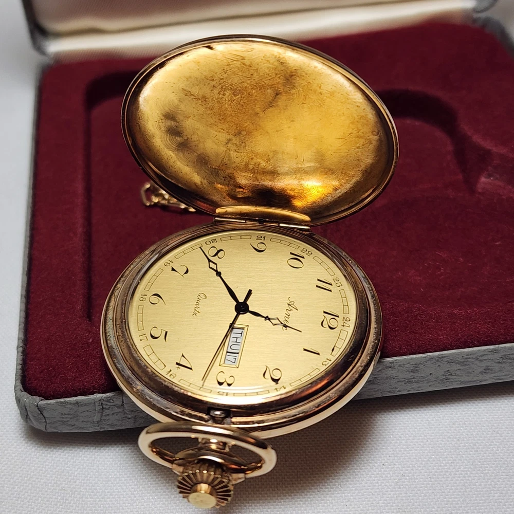 HomeARNEX Gold Plated Quartz Pocket Watch with Stylish Dial