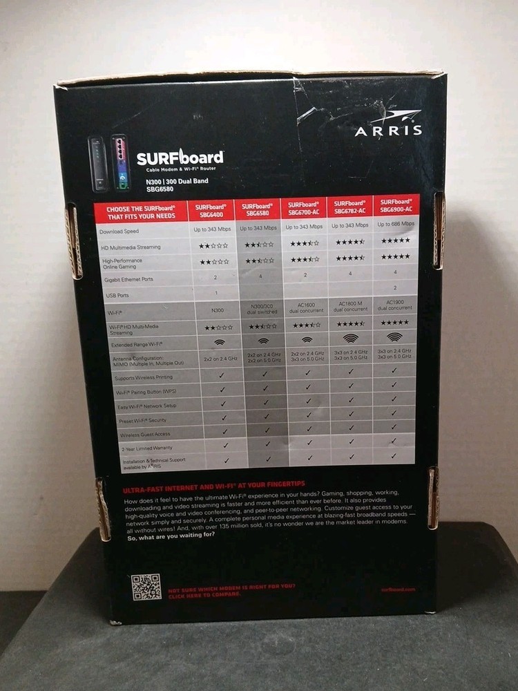 ARRIS SURFboard DOCSIS 3.0 Cable Modem - SB6190 - Black - Open Box