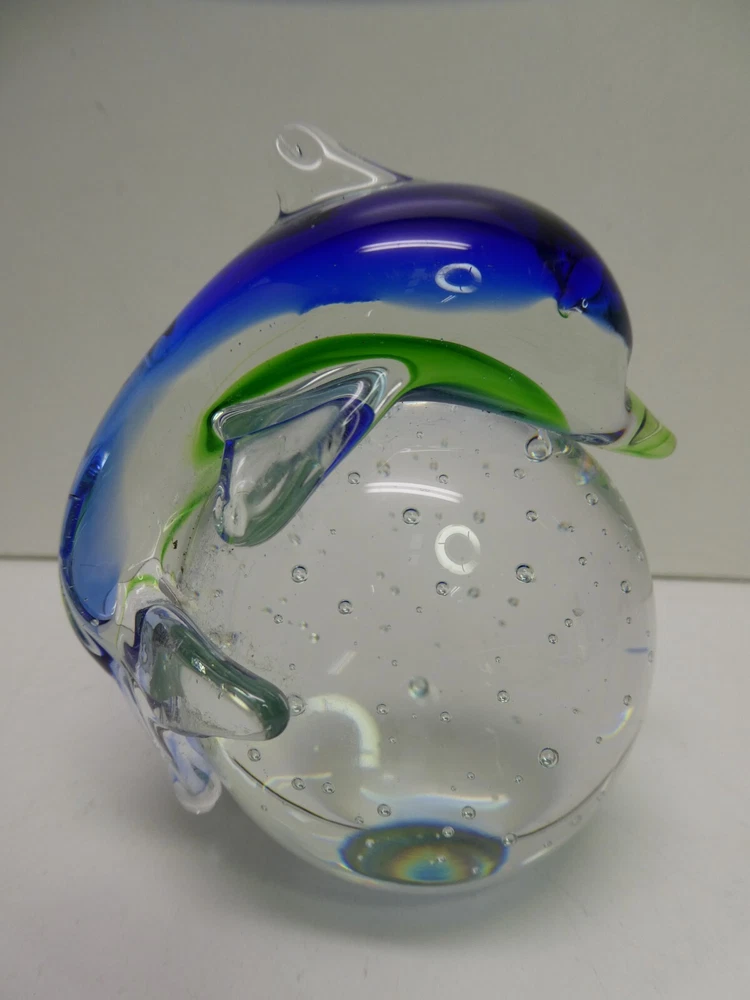 ART GLASS HAND MADE PAPER WEIGHT DOLPHIN SHAPED CASED BUBBLES 9.5 CM HIGH GOOD CONDITION SEE PHOTOS FOR BEST GUIDE
