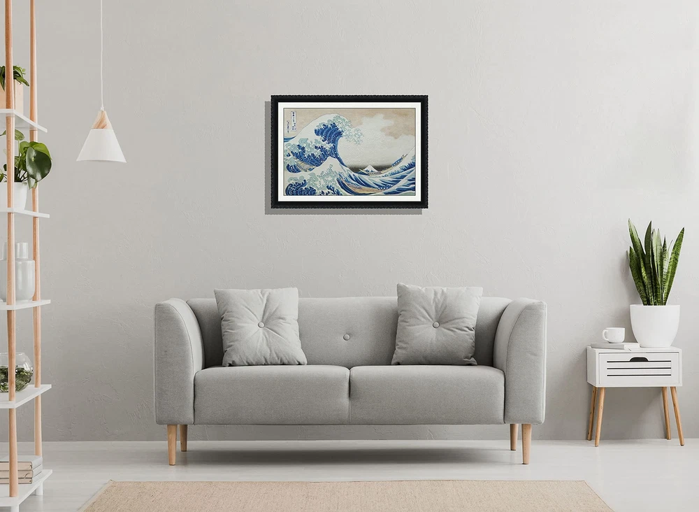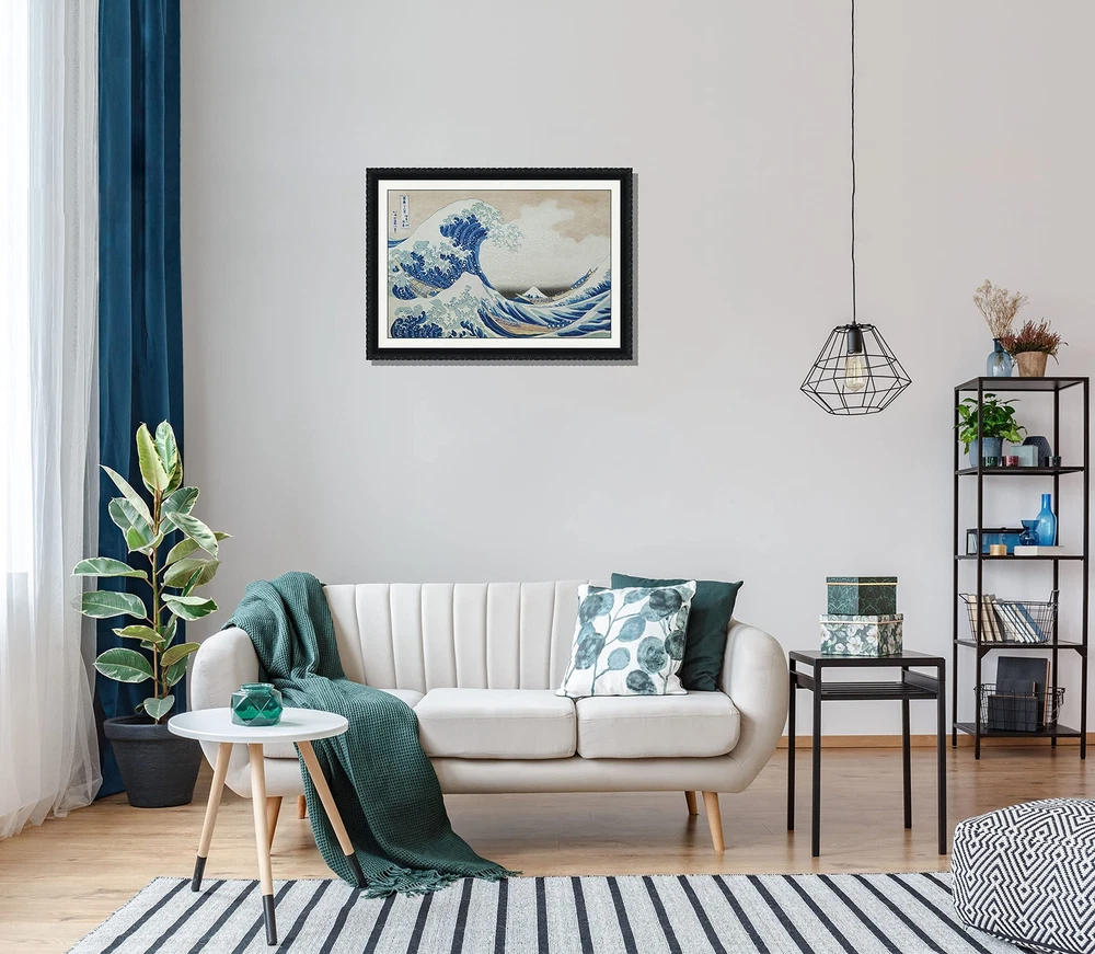 ART ORIGINAL Hokusai Wall Art The Great Wave Japanese 3D Print Simulation Han...