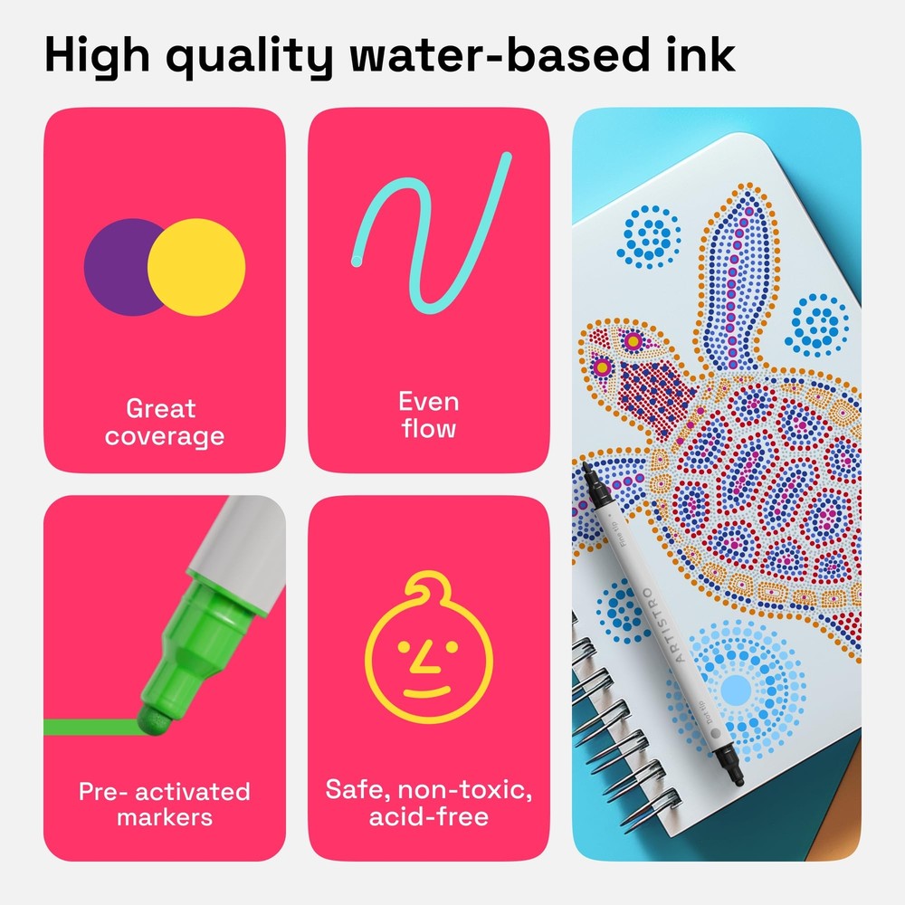 ARTISTRO 12 Acrylic Paint Pens, Acrylic Paint Markers,Fabric Markers for Textile Dual Tip Acrylic Paint Pens with Fine and Dot Tips – Each pen is equipped with a 1-5 mm dot tip for filling large areas and bold points, and a 1 mm fine tip for detailed work. Ideal for versatile use, whether it’s precision or bold color application you need. Pre-Activated Cotton Nibs for Immediate Use – No shaking or pressing required. These acrylic paint markers come ready with pre-activated cotton nibs, allowing you to start creating instantly with quick-drying, smudge-resistant ink. 12 Bright, Eye-Catching Colors for Creative Expression – With a palette of 12 vibrant colors, these markers are perfect for DIY projects, cards, scrapbooks, and unique gifts. Mix, layer, and blend for custom shades and effects on every surface. Multi-Surface Acrylic Markers for Any Project – Designed to perform on paper, fabric, wood, metal, glass, rock, and ceramic, these water-based markers provide consistent, fade-resistant results, letting you create with confidence across multiple surfaces. Perfect for Kids & Adults, Beginners & Pros – Whether you’re exploring paint pens for rocks or looking to elevate your artwork, these markers are versatile tools for all ages and skill levels—perfect for kids, hobbyists, and professional artists alike. Convenient Horizontal Storage for Longevity – Store markers horizontally with caps tightly closed to maintain ink quality and flow. This tip ensures your markers are always ready for smooth, vibrant strokes. Shipping We offer FREE shipping on all orders! We ship within Three business days of payment, usually sooner. We use a selection of shipping services such as UPS, FedEx, USPS etc. We only ship to the lower 48 states, no APO/FPO addresses or PO Boxes allowed. Local pickups and combined shipping options are not provided at this time. Return You can return a product for up to 30 days from the date you purchased it. Any product you return must be in the same condition you received it and in the original packaging. Please keep the receipt. Payment We accept payment by any of the payment methods accepted by eBay. Please pay as soon as possible after winning an auction, as that will allow us to post your item to you sooner! Feedback Customer satisfaction is very important to us. If you have any problem with your order, please contact us and we will do our best to make you satisfied. Contact Us If you have any queries, please contact us via ebay. We usually respond within 24 hours on weekdays. Please visit our eBay store to check out other items for sale! Thank you for shopping at our store.