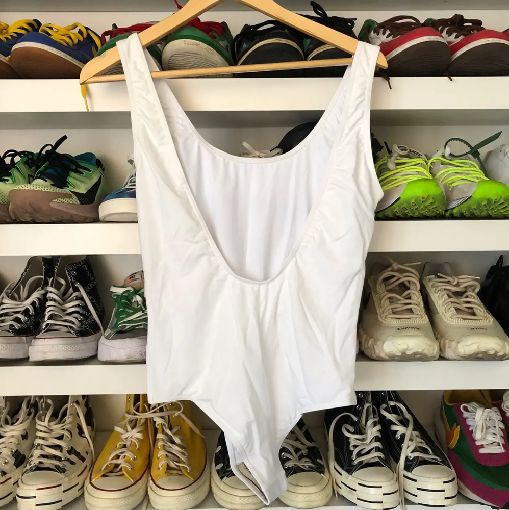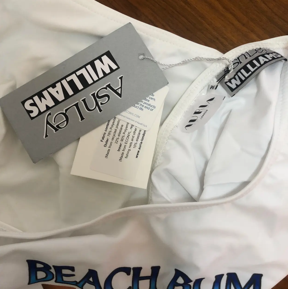 ASHLEY WILLIAMS 'Beach Bum' One-Piece Swimsuit NEW WITH TAGS!! $305 ON DOVERSTREETMARKET.COM!! SOLD OUT ON SSENSE.COM!! Size: Large Color: White Retail: $305 Materials: - Body: 22% polyester, 22% polyester - Lining: 90% polyamide, 10% elastane Features: - Bodycon Fit - Tonal ECONYL® Nylon Lining. - Deep Scoop Back - Tonal Stitching. - Made in United Kingdom. 100% Authentic