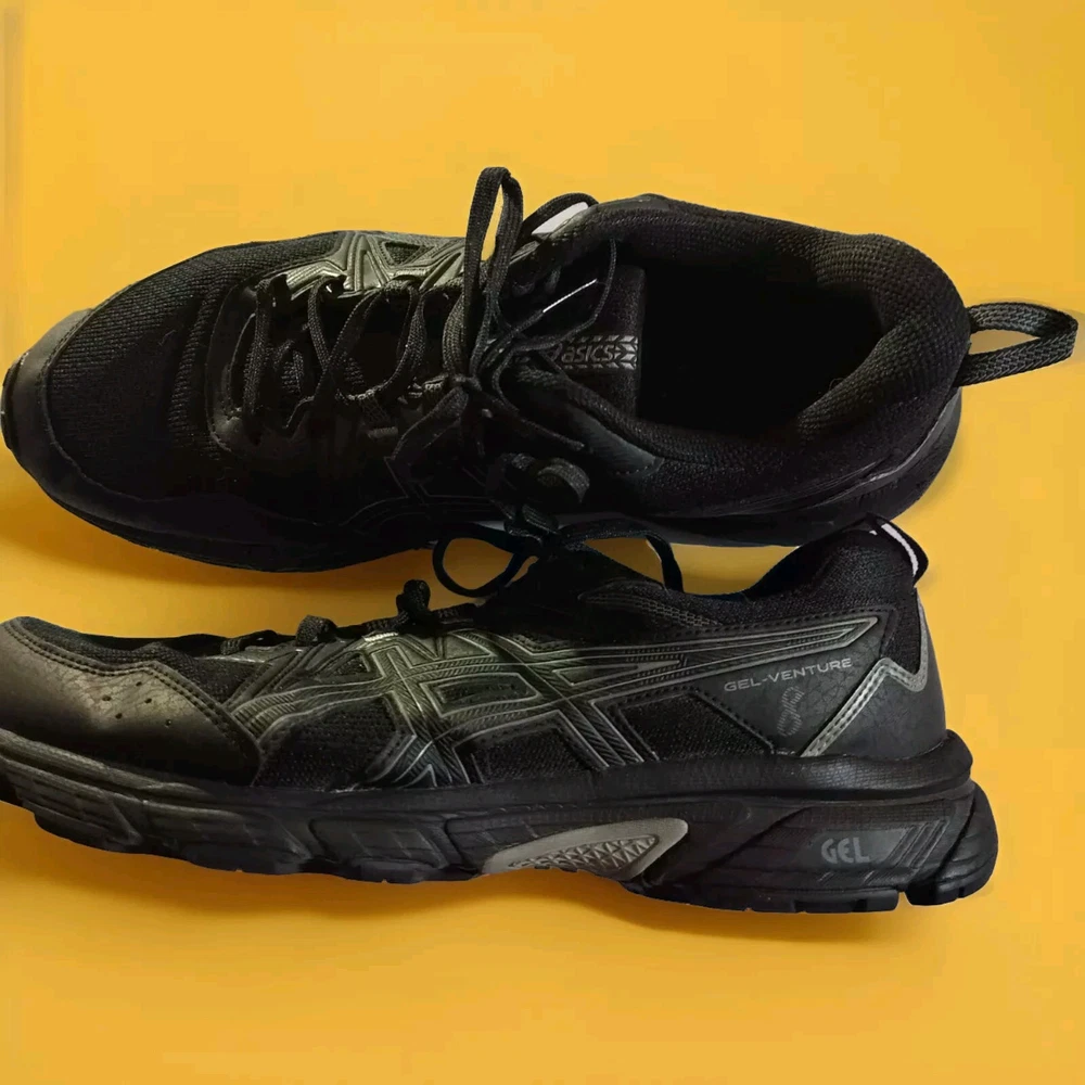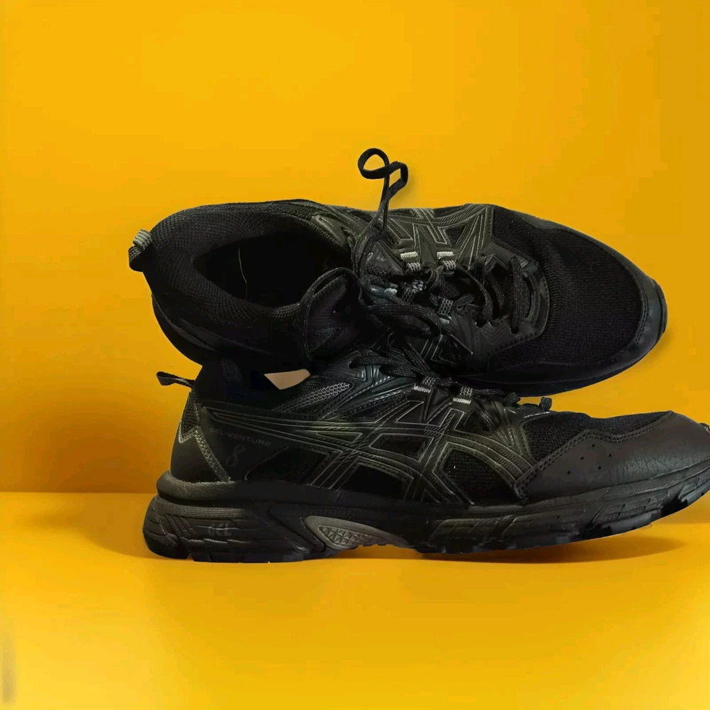 Elevate your active and casual wear with these ASICS Gel Venture 8 Men's Black Athletic Shoes. These sneakers are perfect for any season, whether it's winter, summer, fall, or spring. The shoe features a low top shoe shaft style, lace-up closure, and a solid pattern. The ASICS Gel Venture sneakers are made with synthetic upper material, fabric lining material, and a foam insole material. It also has a rubber outsole material for added durability. These shoes are perfect for gym and training, walking, school, cross-training, CrossFit, running, and jogging. Get your hands on these ASICS Gel Venture sneakers and experience comfort and style in one go.