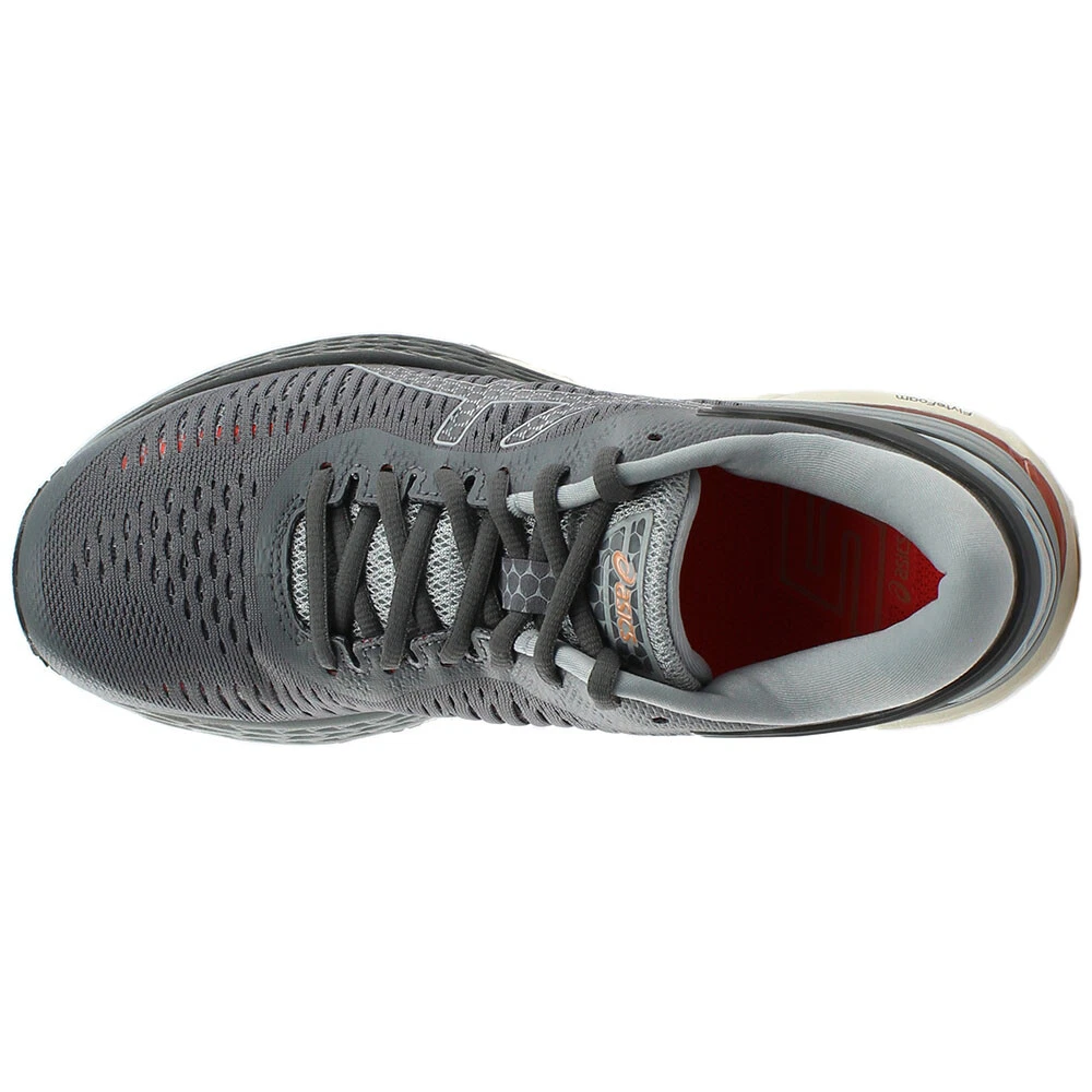 Gel-Kayano 25 Running Shoes 1012A026-020 Product Details FlyteFoam FluidFit Technology: The Gel-Kayano 25 Running Shoes incorporate FlyteFoam FluidFit technology, which combines lightweight cushioning with adaptive support for a personalized and comfortable fit. GEL Cushioning System: ASICS' signature GEL technology is strategically placed in the forefoot and rearfoot to absorb shock, providing exceptional cushioning and reducing the risk of injuries. Ortholite X-40 Sockliner: The Gel-Kayano 25 Running Shoes feature an Ortholite X-40 sockliner, known for its moisture-wicking properties, keeping your feet fresh and dry throughout your run. FluidRide Midsole: The FluidRide technology in the midsole of the Gel-Kayano 25 offers a combination of cushioning and bounce-back properties, providing exceptional comfort and energy return. Guidance Line Technology: The Guidance Line technology in the midsole enhances gait efficiency, guiding the foot through a more natural and efficient stride. Designed for a lightweight ride, the GEL-KAYANO 25 running shoe guarantees high level comfort and stability. FLYTEFOAM technology employs organic super fibers that resist compression, providing enduring bounce on even the longest runs. The springy FLUIDRIDE midsole cushions the foot and reinforces its natural line of movement, working together with the signature GEL technology to minimize impact and protect your joints. Seamless materials and construction techniques keep runners free from uncomfortable pressure points or chafing, while carefully dispersed eyelets allow for more even pressure distribution over the lacing, to give a custom-fit feel. The shoe's sleek design features an internal elastic sleeve that fits snugly around your foot like a sock, with a knit upper inspired by the belt of a traditional Japanese kimono. These shoes will give you the energy and stability you need to run further every time. " Additional Details Color: Grey Occasion: Casual Gender: Womens Age: Adult Brand: ASICS
