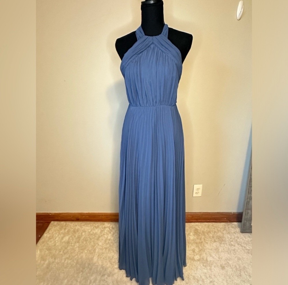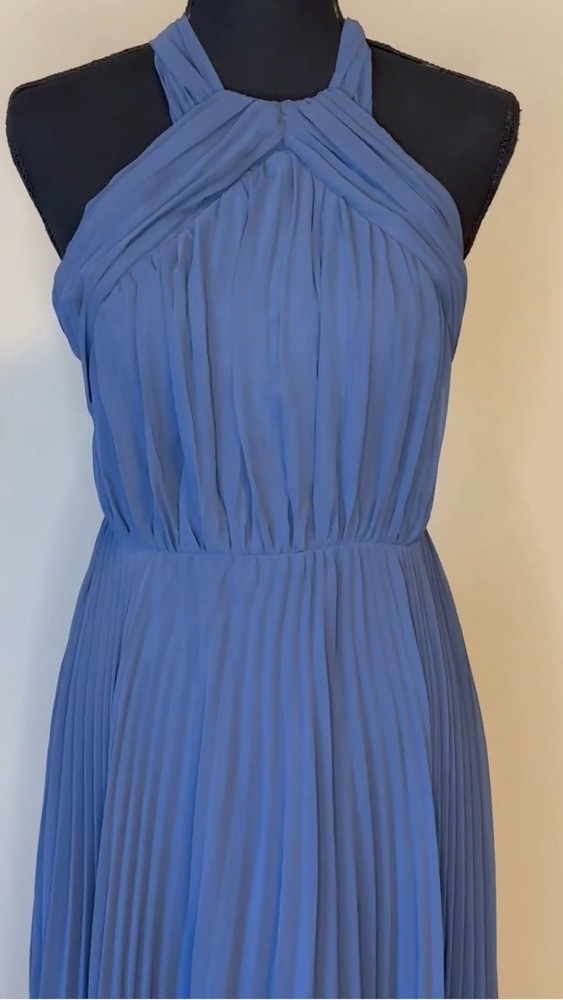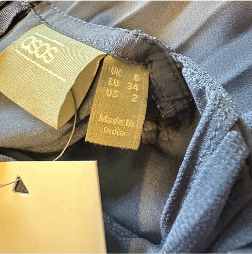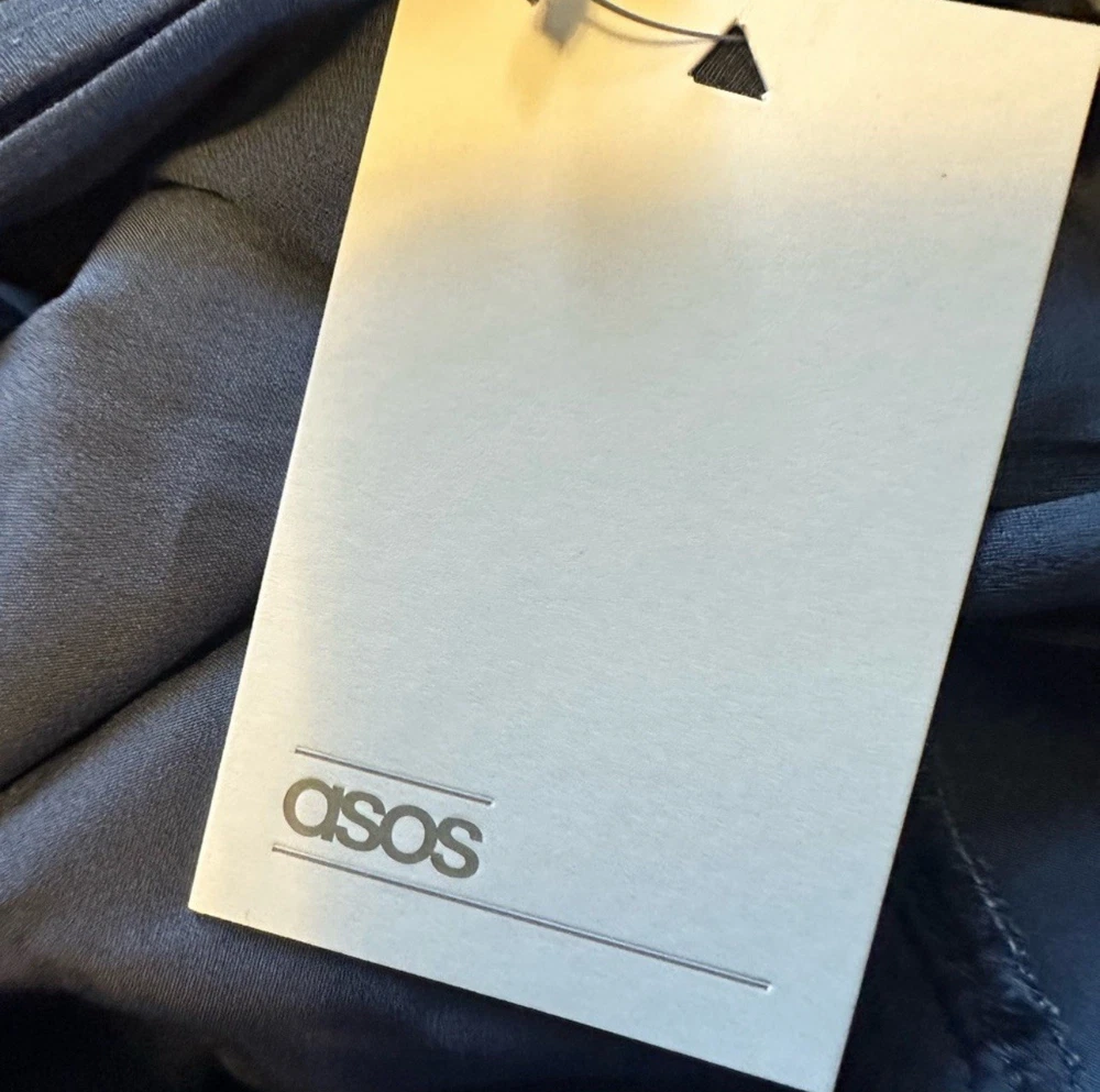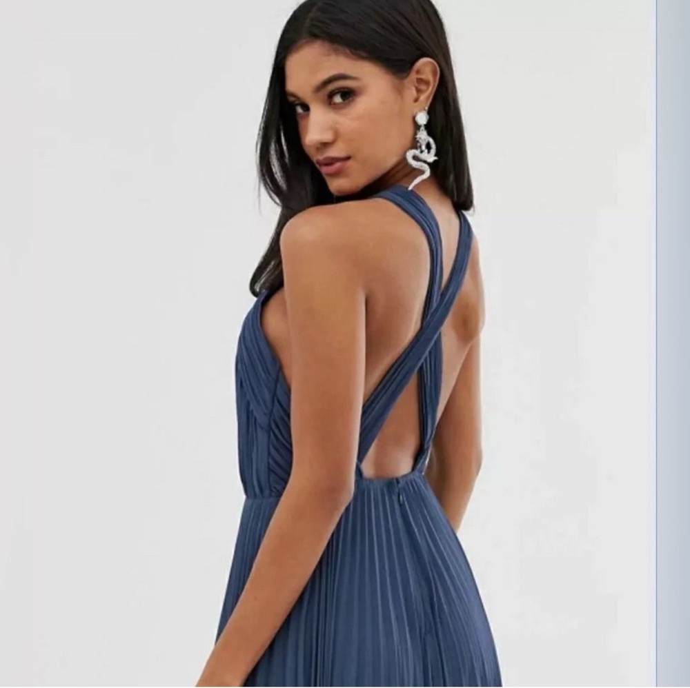 The ASOS Pleated Textured Embroidered Midi Dress in Navy, size 2, is a stylish and elegant ball gown perfect for casual occasions in the summer and spring seasons. With a sleeveless design, collared neckline, and pleated accents, this dress offers a flattering and comfortable silhouette. Made from polyester and featuring intricate embroidered details, this dress is machine washable for easy care. Ideal for women looking for a chic and versatile addition to their wardrobe, this ASOS creation exudes a timeless charm with a modern twist.