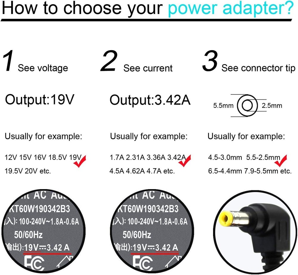 Specification: Condition: Brand New Input: AC 100-240V, 50-60Hz Output: 19V 3.42A 65W (Also compatible with 19V 2.37A 45W) Manufactured with the highest quality materials and include laptop safeguard features against incorrect voltage, short circuit, internal overheating. Built-in overload, over-voltage and short circuit protection Trusted seller of AC Adapters for over 25 years! We are based and operate from New York. Package includes AC Adapter Unit and AC Cord This product is good for the Model#s and Part# listed in our listing title ONLY. 100% New Components - never refurbished, recycled, or used Non-OEM but 100% Compatible - Guaranteed to meet the specifications of your original device All our products have CE and RoHS certificates. Delivery details 1. Items are generally shipped out within 24 hours after your payment has been cleared (Sat. & Sun. excluded.) 2. Orders from the United States will all be shipped out via USPS. The shipments usually takes 2-8 business days (Sunday excluded), if you need the item urgently, please select our Expedited (Priority) shipping option at an additional cost. 3. We ship to US & Canada ONLY. 4. All items will be shipped to buyer’s address. Please check your address before placing the order. Terms of sales Warranty And Return 1. We provide 30 days money back on non-defective, undamaged, unused and resalable products. Product is not eligible for refund after the 30-day refund period has expired. 2. Our warranty does not extend to any products that are physically damaged or that are not under normal operating conditions as a result of misuse or improper installation on the buyer/user's part. 3. For all returned products, Please contact us for the returning address. About us: Thank you for visiting our Ebay listing. Our company has over 25 years experience specializing in laptop parts and accessories. We take pride in working with school districts and Universities providing a turnkey solution to their computing needs. Our customers range from some of the largest enterprise and fortune 1000 companies, but our largest client-base are individual retail customers. We believe in providing a superior product, with a one year warranty as well as a technical support expertise unmatched in the online retail market. Buy from us and experience a level of quality and support that will keep you coming back to us for years to come. Review / Feedback Please leave Positive Feedback and 5 Star Ratings for us if you are satisfied with our products and service, and we will do the same for you. For any problem, please do not leave us negative feedback before email us, we sincerely hope every customer can provide a chance for us to solve the problem. Your Satisfaction is our highest priority. Please contact us if you have any questions, we will try our best to serve you. Contact us For full details about the warranty, please email or message us via Ebay. Please help us do not open the dispute or return request before emailing us. For any questions, feel free to contact us, we will reply you within 1 business day. (not including Public holiday or Sunday)