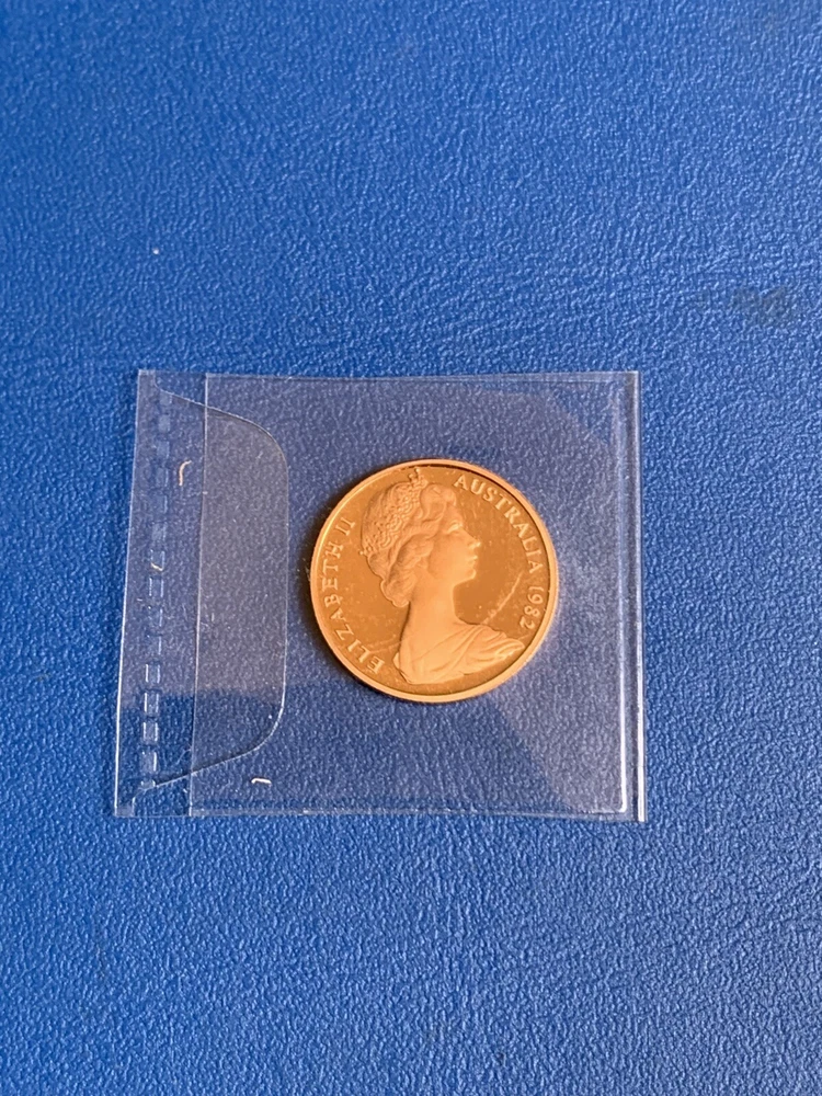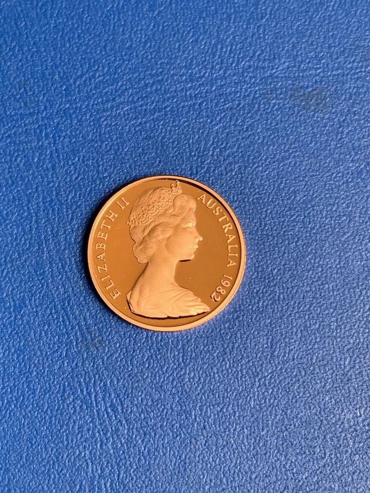 AUSTRALIAN 1982 ONE CENT PROOF COIN. FROM SET & UNTOUCHED. COA NOT INCLUDED IN SALE. IN VERY NICE OUT OF SET ORIGINAL CONDITION.