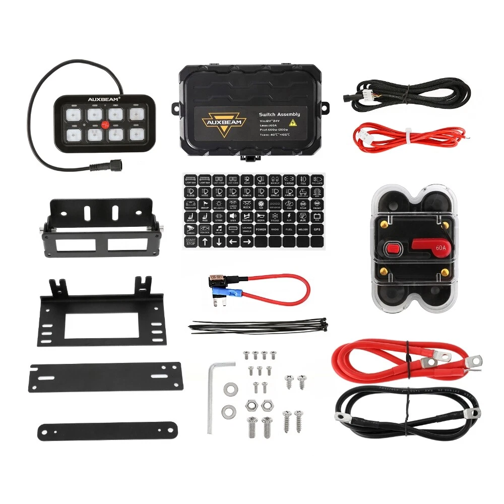 smafay Welcome Description The New RGB switch panel is now available! We do some big upgrades on switch panel! The latest system can be operated via switch panel or smartphone. It’s not limited to just controlling the “ON/OFF” of the LED Lights or electrical devices. Change the color and lighting modes to have fun programming with Auxbeam latest RGB switch panel! Upgraded Functions: ★ RGB -Unlimited color options match dash lighting and vehicle ★ 3 mode setting - Toggle/ Momentary/ Pulsed ★ Bluetooth APP control - Access to accessories no matter whether you are in the vehicle ★ Group setting - Set up a group via APP to control 2 or more lights at the same time ★ DIY switch panel - 60pcs stickers/ 200 default icons/ phone album photos Specification: Working voltage: DC 12-24V Max current: 60A Rated voltage: 12V 20A / 24V 10A Operating at 12 Volts: max power rating of 720W Operating at 24 Volts: max power rating of 1200W Switch operation: On-Off Operating temperature: -40°C - +105°C Waterproof rating: IP65 Features: 8-Gang one-sided outlet switch panel. It allows you to control up to 8 different LED lights or devices. Command all your vehicle accessories by the tap of your finger. 2 control methods - Switch panel & Bluetooth APP, work synchronously. Built-in Bluetooth module allows you to program and control the system anytime & anywhere. 3 modes setting. Each switch has 3 kinds of light status, different indicator status represents different working modes. RED-Toggle, Constant light mode BLUE-Momentary, Press & hold the button to turn on, then release the button to turn off GREEN-Pulsed, Flash mode RGB color. Adjust color and brightness to match your vehicle. brightness automatic dimmable. Automatic adjustment according to the brightness variation of the environment. Customize your own switch panel with 60 universal stickers. DIY button icon on APP. 200 default icons or photo from phone album. Setup group. Manage multiple accessories in your custom groups. Set up 2 or more accessories in a group and control them at the same time. Universal fitment. Widely use for Truck, Boat, Car, Bus, Off-road, Powersports, Marine, ATV, UTV, SUV, Heavy-duty machines, etc. Waterproof IP65, high sensitivity, stability and strong anti-interference ability Easy Installation. No complicated wiring, no need to cut a big hole in your vehicle. Plug & play wiring harness can connect the LED lights or accessories easily. Two types of mounting brackets, you can install anywhere you need, such as the dash panel, center console, overhead sunglasses holder, etc. Bluetooth Connection Requirements: Compatible with IOS & Android devices IOS 9.0 or newer version, Android 4.5 newer version Download the “Switch panel” app from Apple store or Google Play Store (free download). Scan QR code on the instructions. Package Included: 1 Set of 8 Gang RGB Switch Panel (all necessary hardware and wiring harness is included) Installation Instructions Guideline for connecting the red, yellow and white control cables: * The red cable connects the master switch power cable to the ACC. If you want to light up the LED lamps before the car start-up, please connect the recommended because the higher the power is, the more the power of the battery will be consumed. Product Display Payment & Shipping We accept Ebay Payment. Payment should be completed within 7 days of auction closing, or Unpaid Dispute will be filed . If you can not pay in time, please contact us. All items will be shipped out within 48 hours after your payment is verified. Return & Replacement 1. Our items come with a Three-month or One-year warranty. We shall pay much attention to your order and will do our best to solve any problems in a professional business manner. 2. If you are dissatisfied with our items, please contact us for return address within 30 days upon receipt of the delivery. The item must be returned with the original package for refund or exchange. Before you return, please check twice to confirm the item not work and contact our customer service representative, let us know the detailed problem or send us some pictures for confirmation. Feedback 1. Dear buyers, we appreciate your business, if you are satisfied with our service, please leave us a positive feedback and 5 scores DSR . Your recognition will make us more confident to develop business and serve you better. 2. Our goal is to make sure you are a happy buyer and pleasant shopping with us. If you have any questions, please contact us for a resolution firstly . Our working time is (GMT+8) Monday to Friday, 9:00-18:00. We will respond your email as soon as we can . 3. We understand the concerns and frustrations you might have, and will do our best to resolve the issues. Please give us the opportunity to resolve any problem. Thank you for visiting my store!