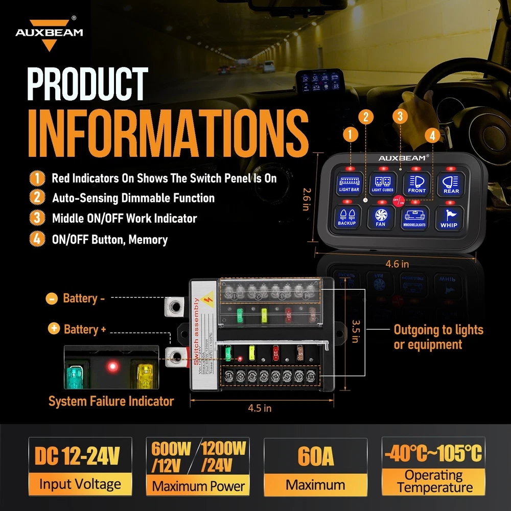 vernavali Welcome Product Description 8 Gang on-off Control Switch Panel kit Outlet on Both Sides Photosensitive Black WM-8B-LB1 Blue Back light Specification: Housing Material: High quality aluminum Input Voltage: 12-24V DC Maximum Power: 600W at 12V / 1200W at 24V Maximum Current: 60A Switch operation: On - Off With/without light sensor: Yes Operating Temperature: - 40° C ~ + 105° C Type: Blue back light Features: * Multi-position installation and wide application. with different brackets, it can be installed in any position you like. * Universal 8 switch panel relay system. power up to 8 lights & accessories from one convenient place. * Customize your own panel, with 50 universal switch stickers, you can customize your unique personal switch panel according to certain needs. * All in one design for your ultimate convenience. This kit has everything you need for installation and use. No need to buy extra parts. * Attomatic Dimmable Back light for Driving Safer. On the road or other bright places, the switch panel will be brighter, so you can see it clearly. * In the tunnel or other dark places, the switch panel will be dim, reduce the impact on the driver's vision Packing included: 1 * Set of 8 Gang on-off Control Switch Panel Note: 1. Please allow 1-3cm (0.4-1.18") difference due to manual measurement and slight color variation for different display setting. 2. Due to the difference between different monitors, the picture may not reflect the actual color of the item. Product Display Payment We accept PayPal via eBay Secure Check-Out only. Payment is expected within 7 days of auction close. Unpaid Items will be forfeited per eBay . Immediate payment needs to be processed for items with Add to Cart option so that any promotional discounts can be applied to your order immediately. Shipping Notice: 1 .We do everything we can to ship your orders out as soon as possible. 2. Shipping and Handling: We process orders within one business day after the payment was clear. ---For domestic economic shipping, It normally takes 2-8 days for delivery. We may ship your order(s) from different warehouses for expedited delivery as we utilize alternative warehouses across the Continental United States.You may upgrade to UPS 3-day Selected which delivery time is typically 1-3 business days. Please be noted that, this service is more recommended for Monday-Thursday orders. Orders on Friday may be processed on following Monday by UPS, according to UPS's policy. ---For International Orders, items may be shipped from our warehouse in south China. Both are the same products and same warranty. Duties and taxes may apply. Please check with your country's custom and eBay policy for more information. Returns Our 30-day Satisfaction Guarantee assures our customers that they will receive all orders promptly and exactly as described. In addition, it allows customers to return new and unused products in their original factory condition for any reason within 30 days from the date of purchase. 1. All returns must be pre-approved by Rbigdoggy and have a return merchandise authorization(RMA) number. Unauthorized returns will not be accepted. 2. Buyers are responsible for appropriate packing, returning shipping cost, insurance and returning the item in "new" condition. Used items will not be accepted for return. 3. We will replace the returning item with an identical item, issue a full store credit or a full refund. The sole and exclusive maximum liability to Rbigdoggy arising from any product sold on Rbigdoggy ebay account shall be the price of the product ordered. Feedback 1. We appreciate your business and strived to improve our customer service and our commitment to quality. 2. We will leave a positive feedback immediately after payment is received. We appreciate a positive feedback as much as you do. 3. If for some reason there is any issue with the purchase, please contact us prior to leaving feedback, and we will be glad to work with you to have it resolved. Thank you for visiting my store!