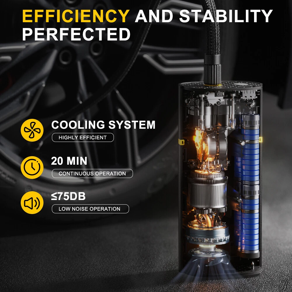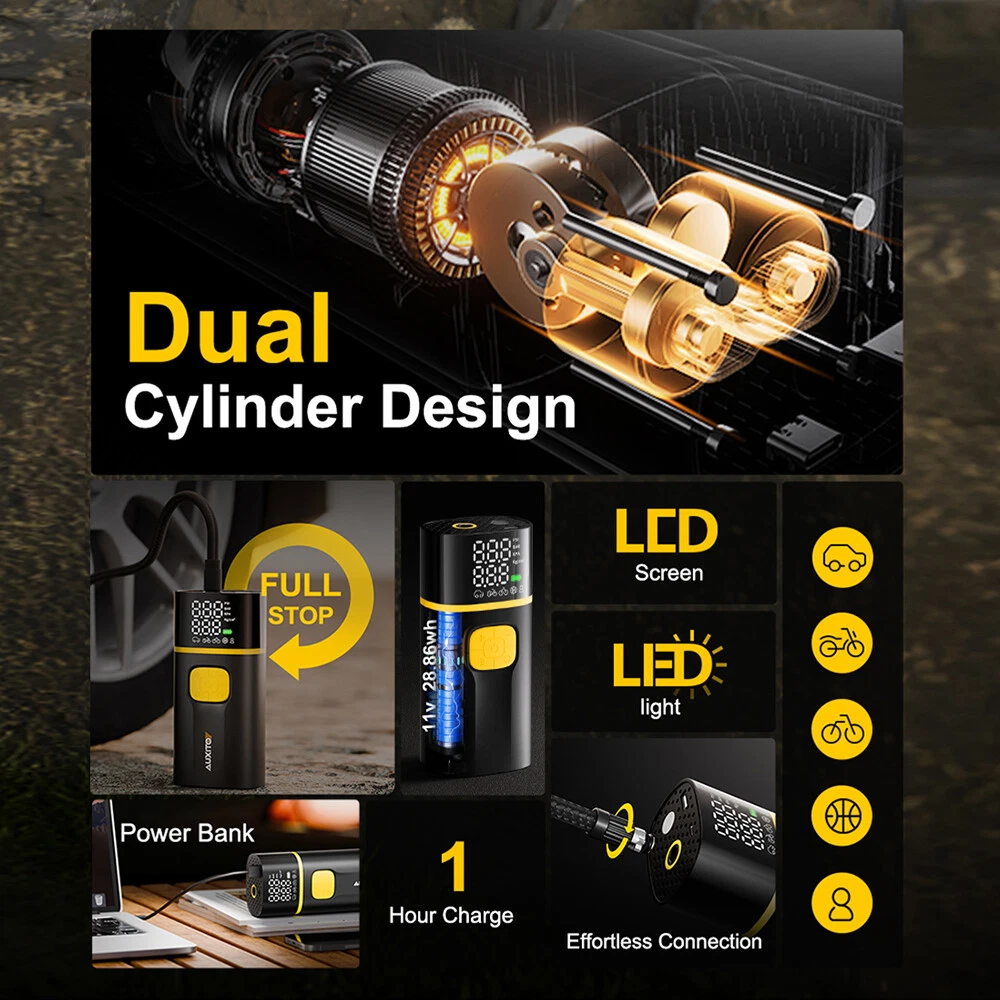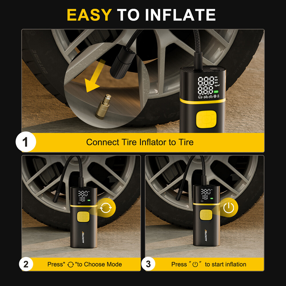 This portable tire inflator is a game-changer! The AUXITO A502 delivers fast, powerful inflation with its 7,800mAh battery—no cords needed. It pumps up tires in no time, reaching 150 PSI with impressive speed. Super convenient for emergencies or regular top-ups, and surprisingly quiet for its power. A must-have for any driver!