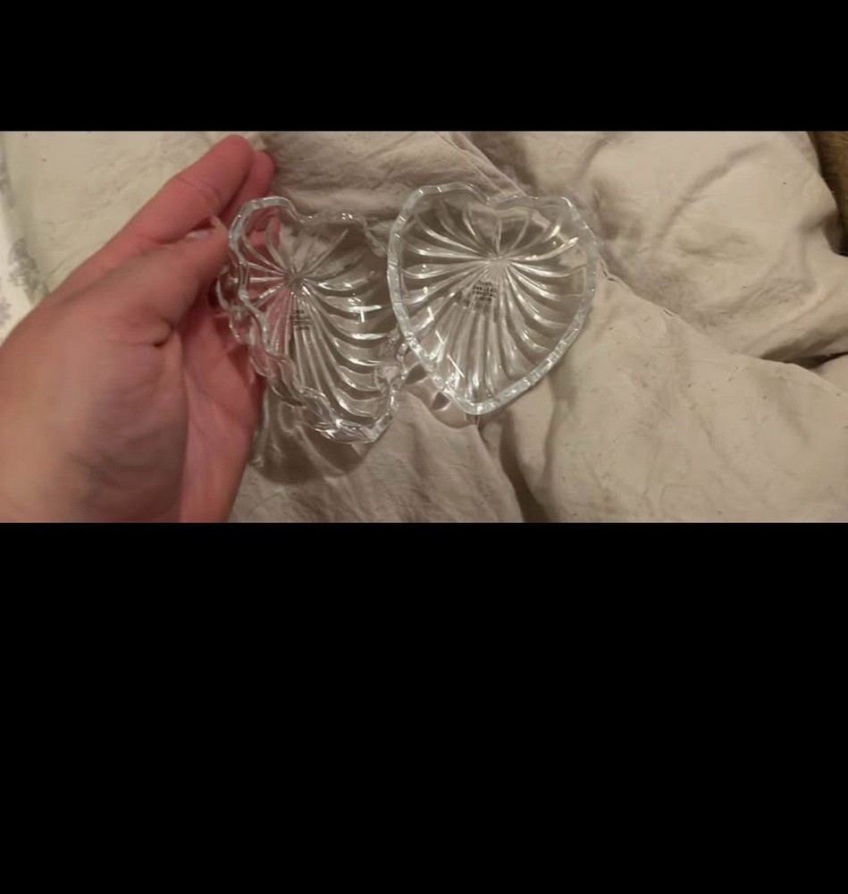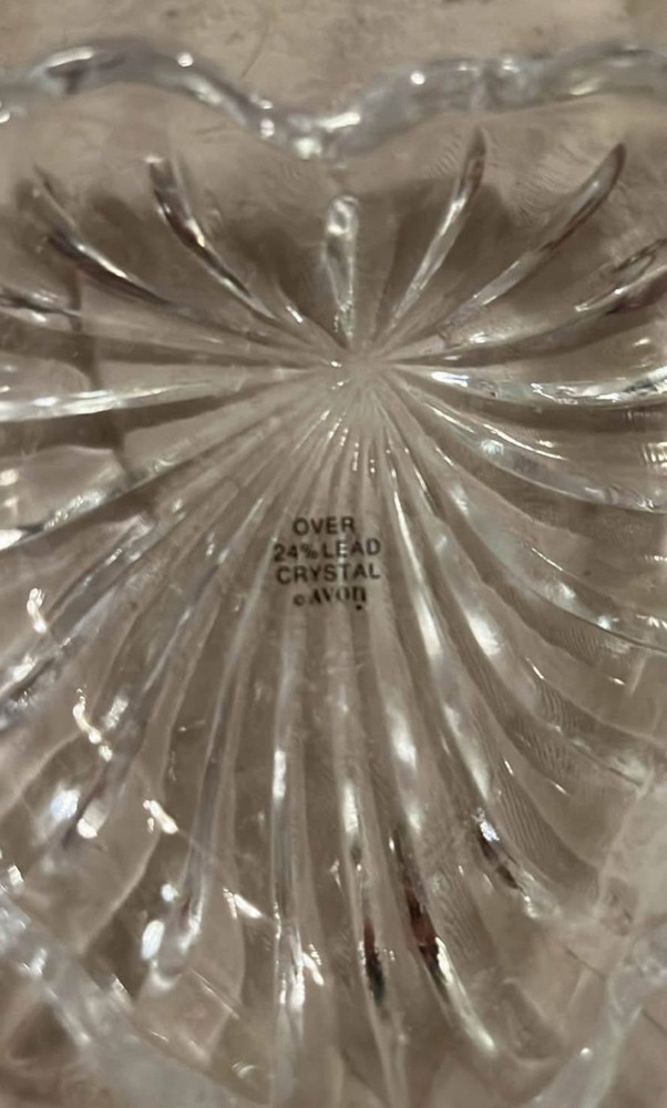 The AVON Clear Crystal Heart Shaped Trinket Jewelry Box with Lid is a charming and elegant piece made of 24% lead crystal glass. Featuring a romantic heart-shaped pattern and clear color, this small trinket box is perfect for storing jewelry or keepsakes. The faceted finish and intricate carvings add a touch of sophistication, making it a beautiful addition to any collection. With a 1980s style and limited edition status, this Avon trinket box is a timeless piece that would be perfect for any occasion.