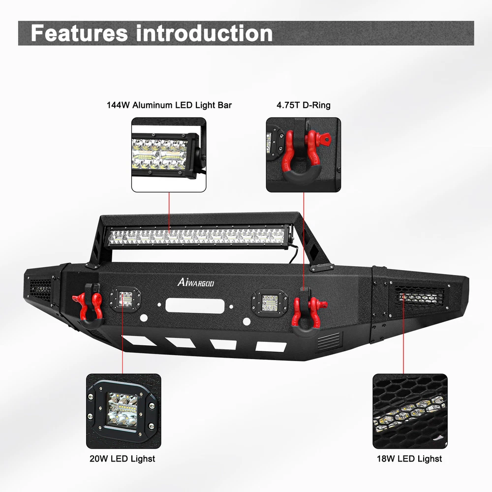 60 Days FREE RETURN | Awesome customer's service GUARANTEED | Free & Fast shipping Manufacturer Direct Sell | 100% Positive Feedback | Fast&Secure Delivery Product description: Package : 1X Front Bumper 1X144W LED Light Bar 2X Square LED Light 2X Strip LED Light 2X4.75T D-Rings A set of screws Installation instructions 1X Free Wiring harness kit 2 lead Volume and Weight: Front Bumper Volume:78.3X24.8X18.9(inches) Weight: 134.5lbs. Front Bumper Descriptions: Aaiwa For 2015-2017 Ford F-150 New Front Bumper W/Winch Plate&LED Lights&D-Ring 60 Days FREE RETURN | Awesome customer's service GUARANTEED | Free & Fast shipping Manufacturer Direct Sell | 100% Positive Feedback | Fast&Secure Delivery Product description: Package : 1X Front Bumper 1X144W LED Light Bar 2X Square LED Light 2X Strip LED Light 2X4.75T D-Rings A set of screws Installation instructions 1X Free Wiring harness kit 2 lead Volume and Weight: Front Bumper Volume:78.3X24.8X18.9(inches) Weight: 134.5lbs. Front Bumper Descriptions: [Fits Following Vehicles] - for 2015-2017 Ford F-150 (except Raptor) . [Heavy-Duty Protection] - Front Bumper is manufactured from heavy duty 5/32" steel sheet and 2"X0. 120" steel tubing to add protection to your precious vehicle while providing it with superior towing capabilities with its heavy-duty D-rings. It also gives your vehicle an attractive upgrade in its appearance for added style. [Surface Protection.] - Premium Two stage finish using epoxy pre-coating and high-grade textured black powder coating and along with our advanced laser welding technology for long lasting surface protection.. [Extremely Bright Light] - Built-in 1x 144W long light bar,2x 18W strip lights,2x 20W square lights.They brighten up the road, perfect for any night time adventure. [Bolt-on Installation] - The bumper is engineered to be a direct bolt-on installation for your, No Drilling or Modification Require,Package Comes with instruction for installation. Item Specifics Type Bumper Protector Brand Aaiwa Manufacturer Part Number Does Not Apply Fitment For 2015-2017 Ford F150 F-150 Color Black Material Stainless Steel UPC 749838979811 Construction Heavy Duty High Tensile Steel Manufacturer Warranty 3 Years Bumper Cut-out Towing Hitch Cut-out OE Spec or Performance/Custom Performance/Custom Fitment Type Direct Replacement Finish Powder Coated Style Perfect for Off-Roading Protection Features Mounting Hardware Included, Led Lights & D-rings Included Placement on Vehicle Front Interchange Part Number Pickup Truck Winch Bumper Bull Guards Fog Light Bar Textured Front Bumper Volume 78.3X24.8X18.9(inches) Weight 134.5lbs. Payment 1.We accept PayPal, Google Pay, VISA, Master Card, Amex. Credit card payment can also be made via PayPal 2.All products will be sent to your eBay address. Please make sure your eBay address is correct before you pay. 3.If you would like to change your address, please contact us ASAP by eBay message before shipment. Shipping 1.Package can be shipped out to you within 24-48 hours from USA 2.The default expected delivered time is 2-8 working days 3.We send the most packages via USPS/ UPS/Fedex Or DHL 4.Delivery is not available on weekends, public holidays or after business hours. 5.If you have any questions or issue about delivery, please contact us via eBay Messages and we will do our best to make sure you’re happy. Returns 1.We will provide 3 years warranty. And you may return all products within 60 days of delivery for replacement or refund if you're unsatisfied with them. 2.If you would like to return your product, please contact us within 60 days of the sale date so we can offer the pre-label. This must be done through eBay messages. Please do not return a product without first contacting us. 3.Buyers are responsible for appropriate packing, returning shipping cost, insurance and returning the item in “new” condition. Used items will not be accepted for return. 4. If you received wrong of defective products, please take photos and contact us to confirm. 5.For the returned products, we will arrange a new replacement or issue a refund after we have received your package and inspected it. Contact Us 1.We operate the shop based on the principle of " quality first, credit first, customer first, integrity". Please contact us to solve the problems firstly if you have any ones. 2.Our Company specialize in producing and selling LED Work Light/ LED Light Bar/ LED Headlight/ Auto Parts & Accessories 3.Due to the time difference, we may not be able to respond to your message in time, we will check the message and solve your problem at the first time.Our Customer Support Working Time:(GMT+8)Monday to Friday--9:00-18:00. Warranty For your peace of mind, this product comes with 1-3 year warranty. We value our customers and wish to make your purchase experience as enjoyable as possible. If something goes wrong with your product, please do not hesitate to contact us for assistance. US STOCK 60 DAYS RETURN LOW PRICE 100% Brand New HIGH QUALITY Aaiwa For 2015-2017 Ford F-150 New Front Bumper W/Winch Plate&LED Lights&D-Ring 60 Days FREE RETURN | Awesome customer's service GUARANTEED | Free & Fast shipping Manufacturer Direct Sell | 100% Positive Feedback | Fast&Secure Delivery Product description: Package : 1X Front Bumper 1X144W LED Light Bar 2X Square LED Light 2X Strip LED Light 2X4.75T D-Rings A set of screws Installation instructions 1X Free Wiring harness kit 2 lead Volume and Weight: Front Bumper Volume:78.3X24.8X18.9(inches) Weight: 134.5lbs. Front Bumper Descriptions: [Fits Following Vehicles] - for 2015-2017 Ford F-150 (except Raptor) . [Heavy-Duty Protection] - Front Bumper is manufactured from heavy duty 5/32" steel sheet and 2"X0. 120" steel tubing to add protection to your precious vehicle while providing it with superior towing capabilities with its heavy-duty D-rings. It also gives your vehicle an attractive upgrade in its appearance for added style. [Surface Protection.] - Premium Two stage finish