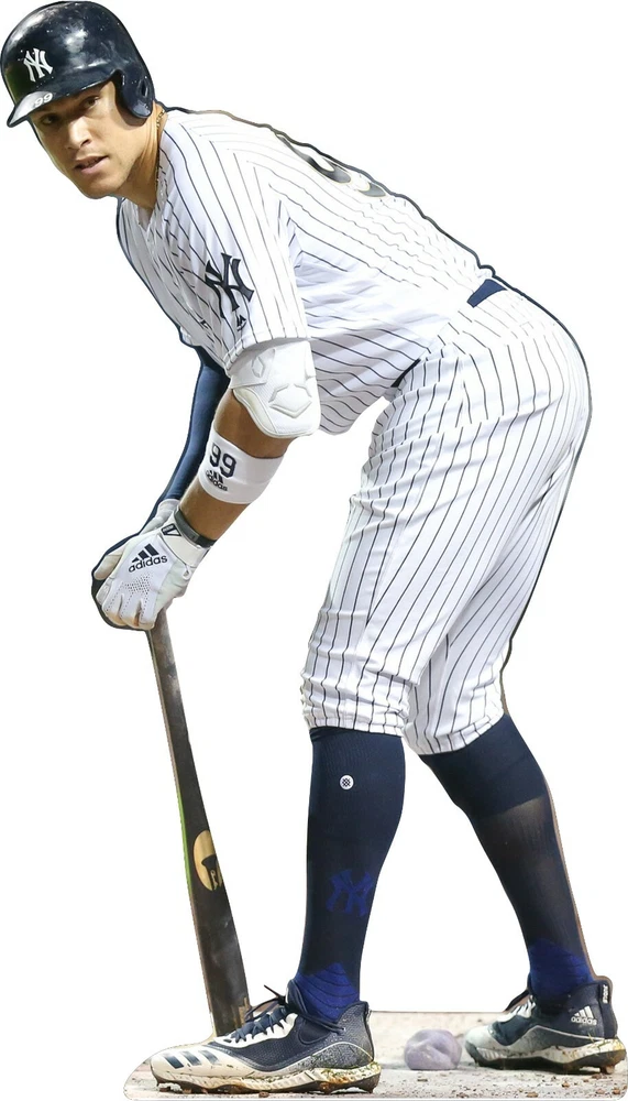 Aaron Judge - approx size 70" Tall x 40" wide. Information provided to cover questions buyers may have. Please notify seller directly with any questions or issues you may have within 48 hrs of receiving your order. We will expedite the solution. When opening package, cut around all 4 sides and unfold the packaging as opposed to cutting one side and pulling the cutout out. This will eliminate the chance of ripping, while pulling cutout out of the package. PLEASE REVIEW IMAGE ENTIRELY BEFORE PURCHASE TO MAKE SURE IT IS SATISFACTORY FOR YOUR PURPOSE. NO RETURNS. ZOOM IN AND MAGNIFY TO SEE IF IT MEETS WITH YOUR APPROVAL. Hover your mouse over image and facial, to magnify. If you fill your screen with the person's head, and walk 6ft away from your computer screen, that will give a better representation of how the cutout will look when viewed at that distance. Distance matters when viewing large photos. Most people do not view cut outs from inches away. ALL CUTOUTS ARE SHIPPED FOLDED IN THIRDS. If you wish to have it shipped unfolded, flat, the cost can be anywhere from $100-$250. If that is something your are interested in, please email us. Shipped via UPS. You can change shipper to your choice. Select -Shipping Calculate -see details. Put in postal info-get rates. ***NOTE ABOUT IMAGE QUALITY - READ BEFORE PURCHASING** As much as we wish all images used for the cutouts are perfect high resolution quality , some photos are not perfect quality, but our suppliers use what they have to work with. Most customers use these cutouts for parties, decoration, or for a collection of their favorite people, so many times "image quality" is not necessarily their priority. Their main priority is that they want it for their party, and understand that even though not perfect, it is more than fine when viewing from a normal viewing distance. Most people do not view a lifesize cutout from inches away and examine them. Most people set them up, and they are viewed from 6ft+ away, and they look totally fine at that distance. W E ARE GIVING YOU THE CONSUMER THE CHOICE TO PURCHASE OR NOT. If you are unsure about the purchase, and require the image to be flawless, even at close distances, then please do not purchase this item, as we do not offer returns. We purposely provide close up photos of the person's face in the listing, to show you the image's quality when viewed up close. Please zoom into this photo. Keep in mind you are probably inches away from your computer screen or phone which is most likely not the distance one would be viewing these cutouts. If you fill your screen with the person's head, and walk 6ft away from your computer screen, that will give a better representation of how the cutout will look when viewed at that distance. Distance matters when viewing large photos. IT IS YOUR RESPONSIBILITY TO VIEW THESE PHOTOS AND DETERMINE IF THE QUALITY IS SATISFACTORY TO YOU BEFORE PURCHASING. ** NOTE ABOUT PACKING & SHIPPING ** Shipping items greater than 48" can get costly. Due to this, we have to fold cutouts. Usually 2 folds for items that are 5ft to 6ft tall. If the item is closer to 7ft tall, there will be 3 folds. This is a common practice for any cardboard cutout you buy anywhere. It needs to be folded to save on shipping. Shipping a folded item generally can cost between $8 to $16 using USPS. If we were to try and ship unfolded, USPS would not even allow a size that big, and if we use Fedex, the cost can range from $80-200 due to the shipping size alone. If that is something you want us to quote you, we would need your address and which cutouts you want, and we can get a custom shipping quote. Deliveries: -We are not responsible for any of the courier's delivery times. -The delivery times that ebay displays on our listings are ebay's estimates, based on our stated handling time and their estimated delivery time, based on the courier you choose. -USPS is not a guaranteed shipping service. -It is the couriers estimated transit time. -Fed Ex guarantee means FedEx will reimburse the cost of shipping only, not the product, if not delivered in the time frame you selected, with some exceptions which you can see on their website) -No carrier can guarantee delivery.